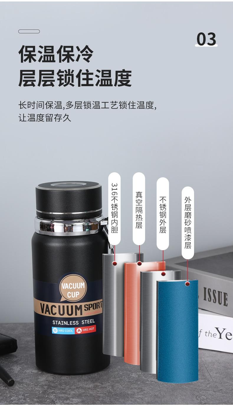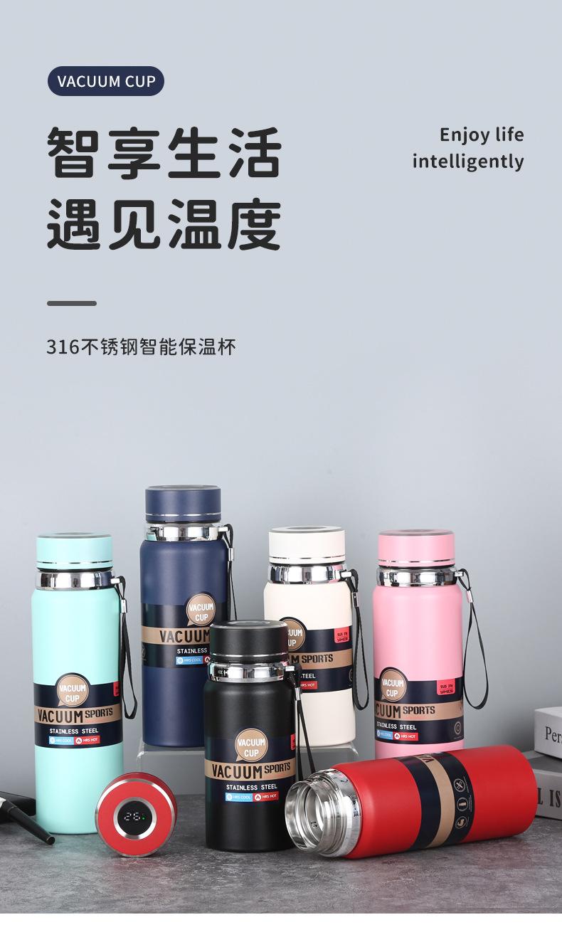Nuevo Vaso Inteligente Aislado de Acero Inoxidable 316 de Gran Capacidad, Termo Aislado para Exterior, Botella de Agua Deportiva con Correa Portátil