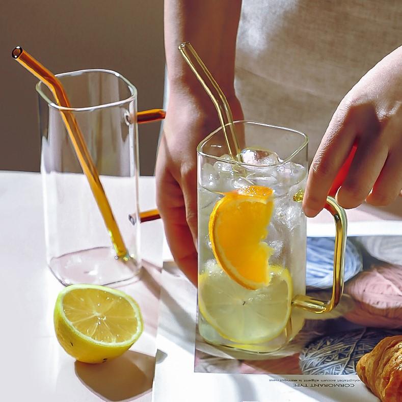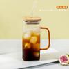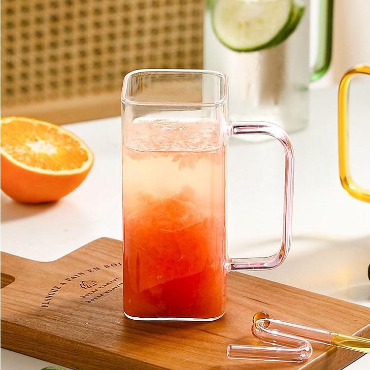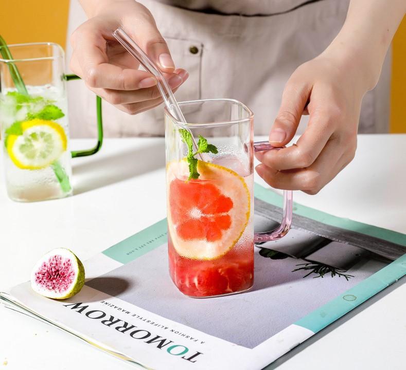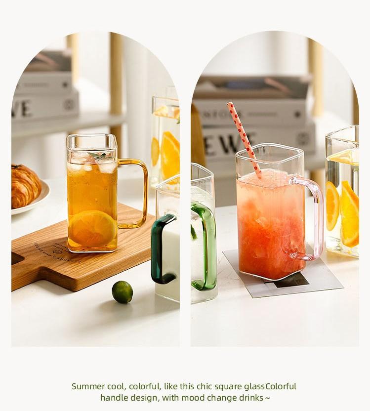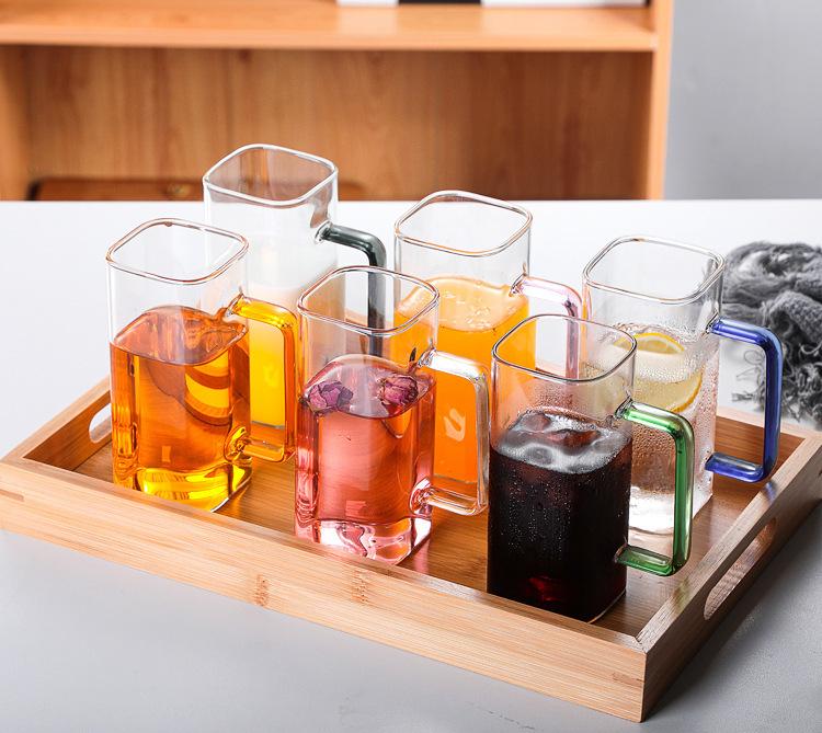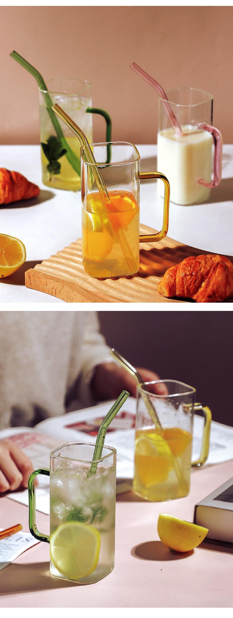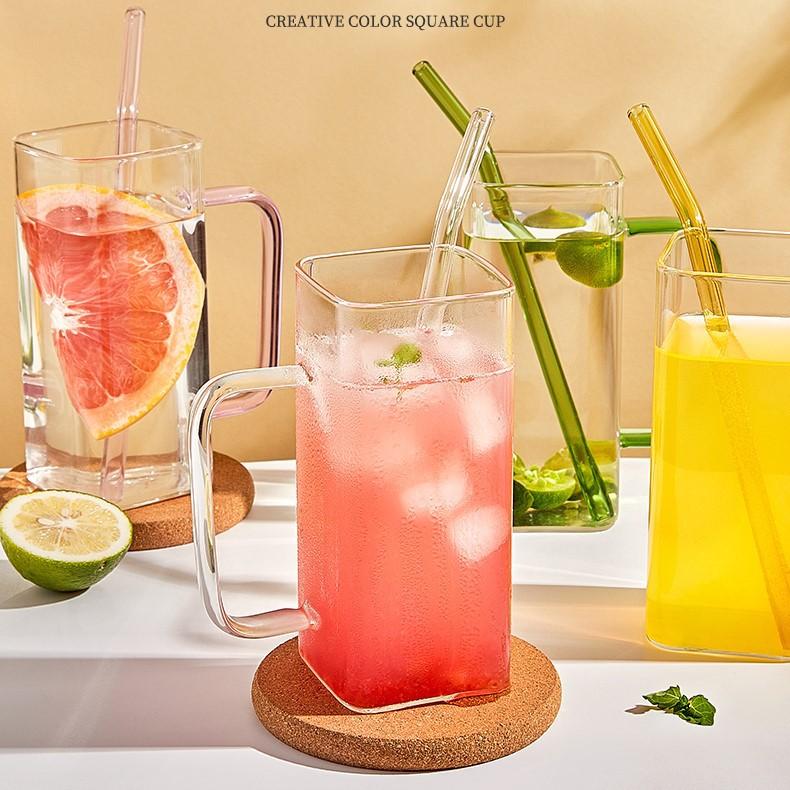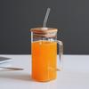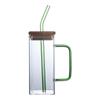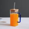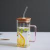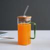 Taza de Vidrio Resistente a Altas Temperaturas con Tapa de Bambú, Taza Transparente de Vidrio Cuadrada con Popote, Taza de Agua de Celebridad de Internet, Vaso para Bebidas, Portátil