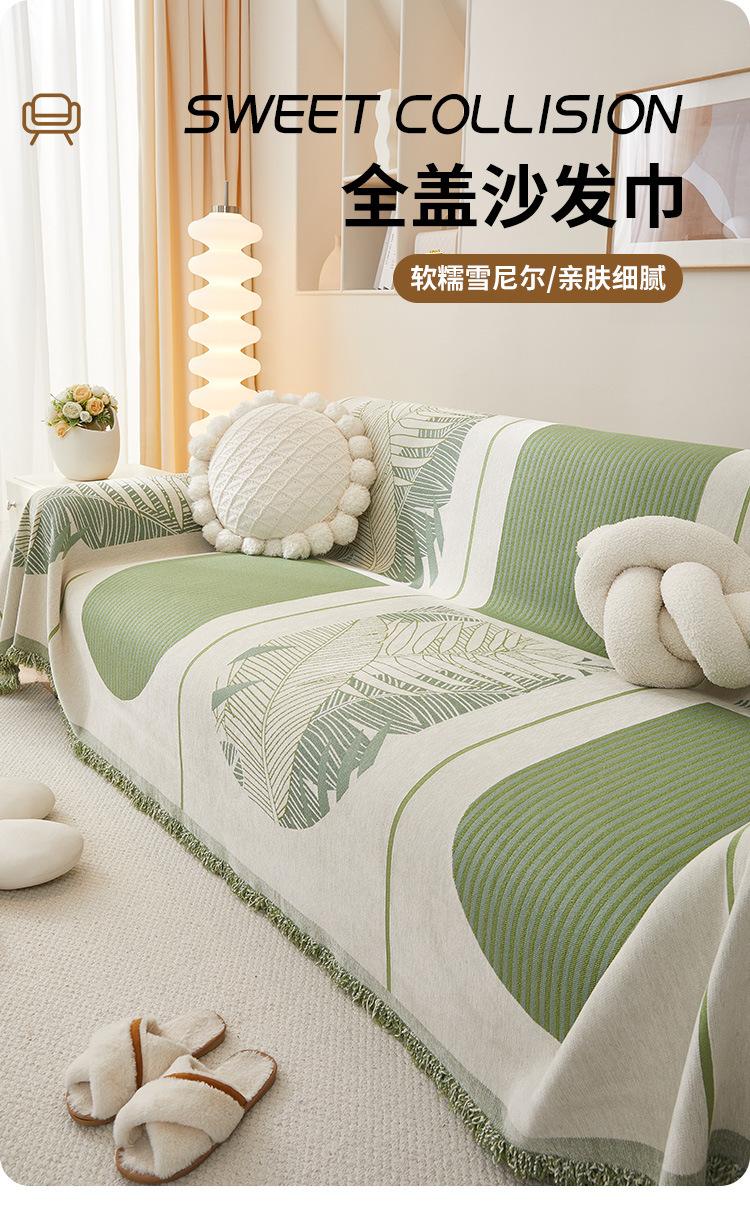 Toalla para Sofá Estilo Ins Cubierta Completa Chenilla Verde Universal para Cuatro Estaciones Cubierta de Cojín para Sofá de Alta Gama