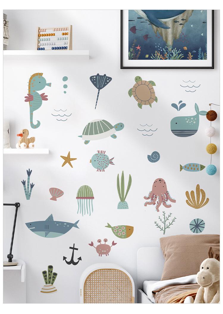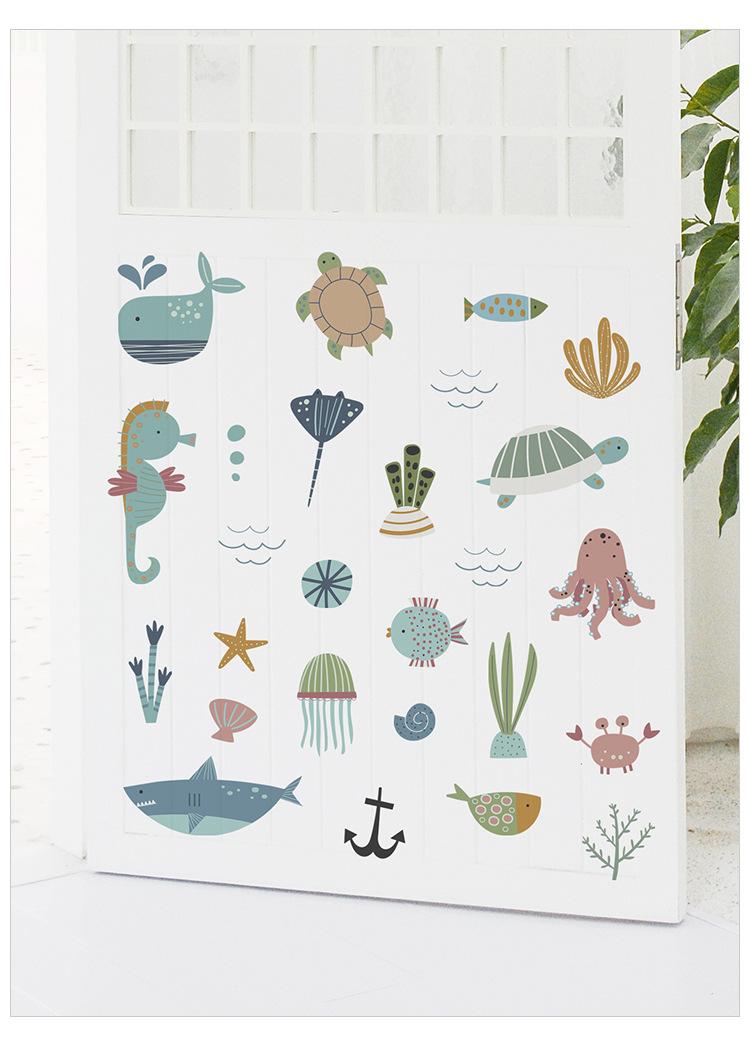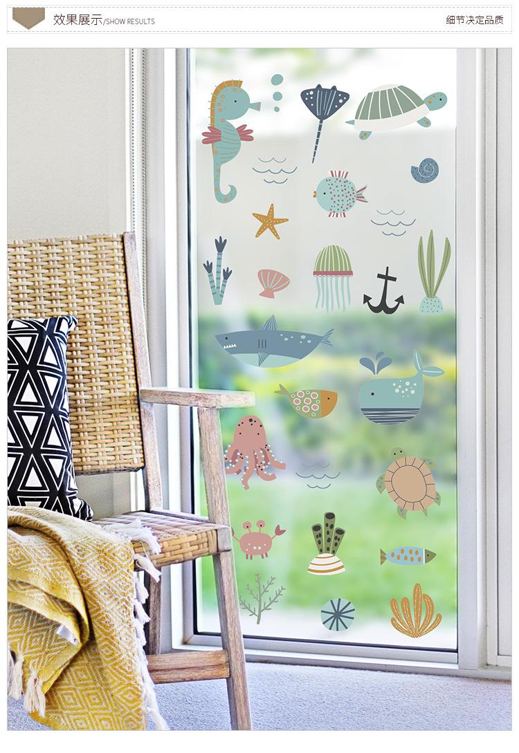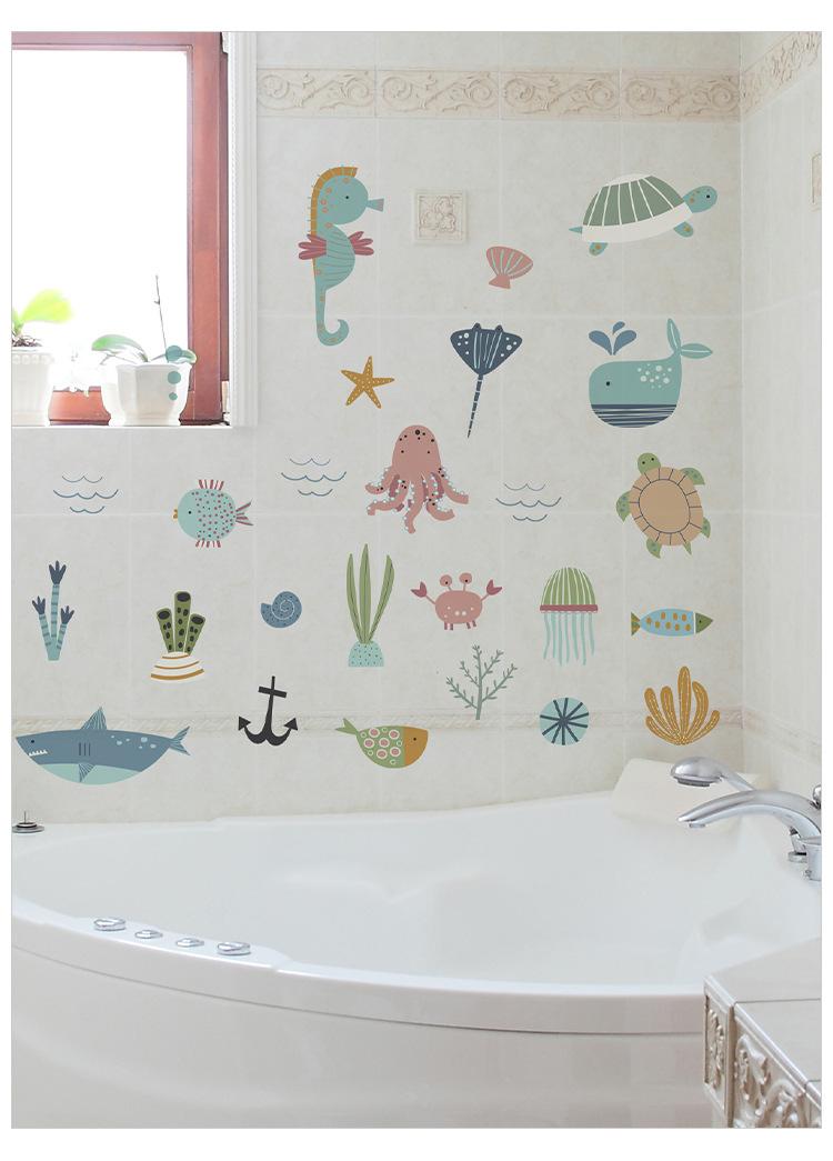Adhesivo Decorativo de Peces de Océano Azul para Baño, Vidrio, Bañera, Pared, Estrella de Mar, Hipocampo, Adhesivo de Pared de Fondo para Habitación Infantil