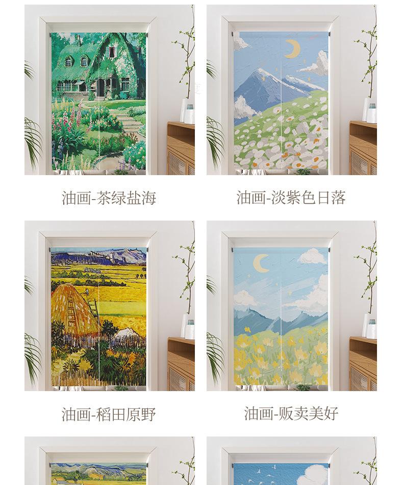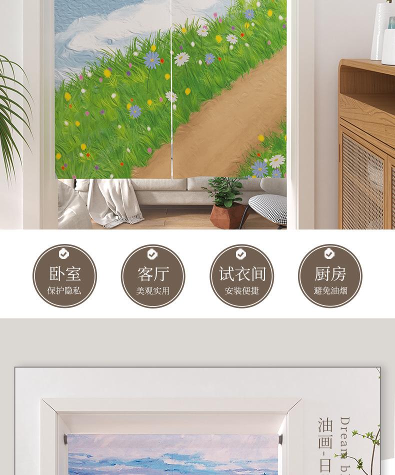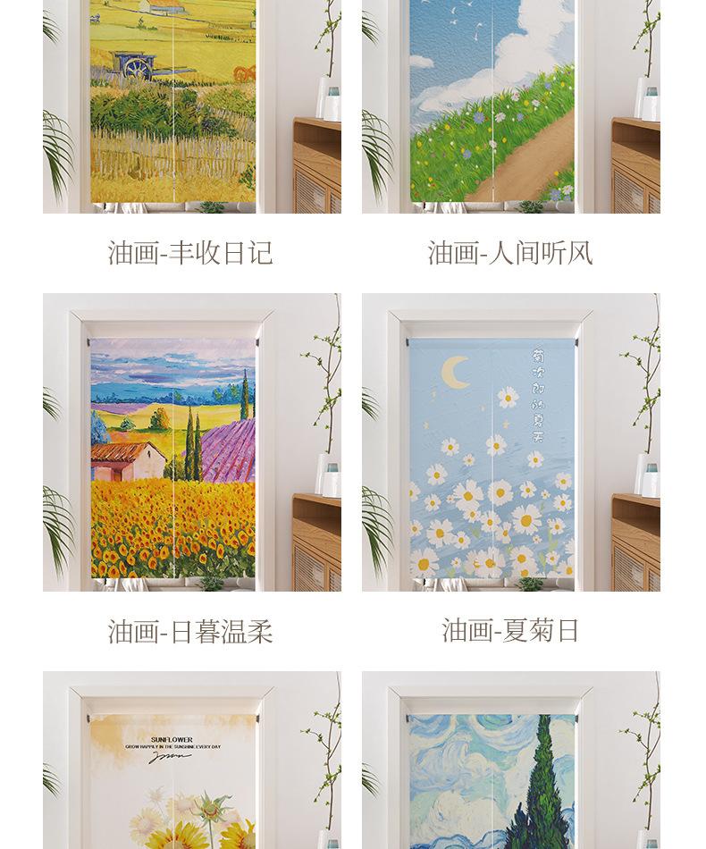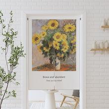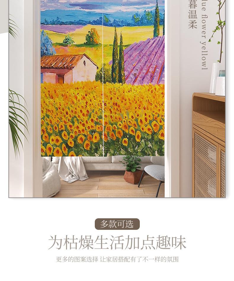 | Cortina de lino con diseño de girasol y pintura al óleo para puerta, cortina divisoria para habitación, cortina de bloqueo sin perforaciones, cortina de media cortina para cocina, dormitorio y sala de estar |