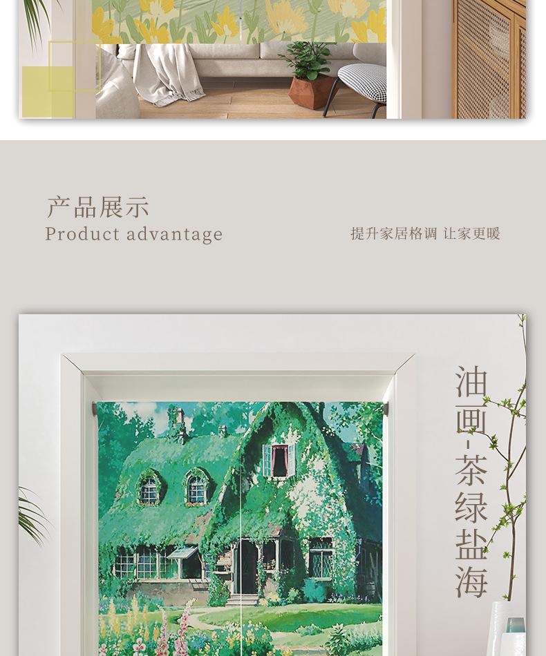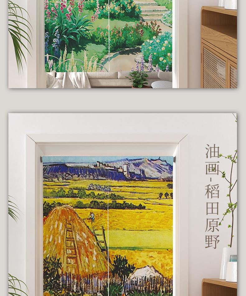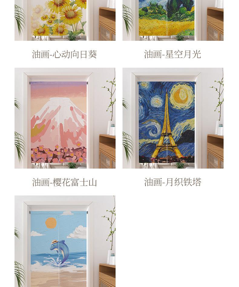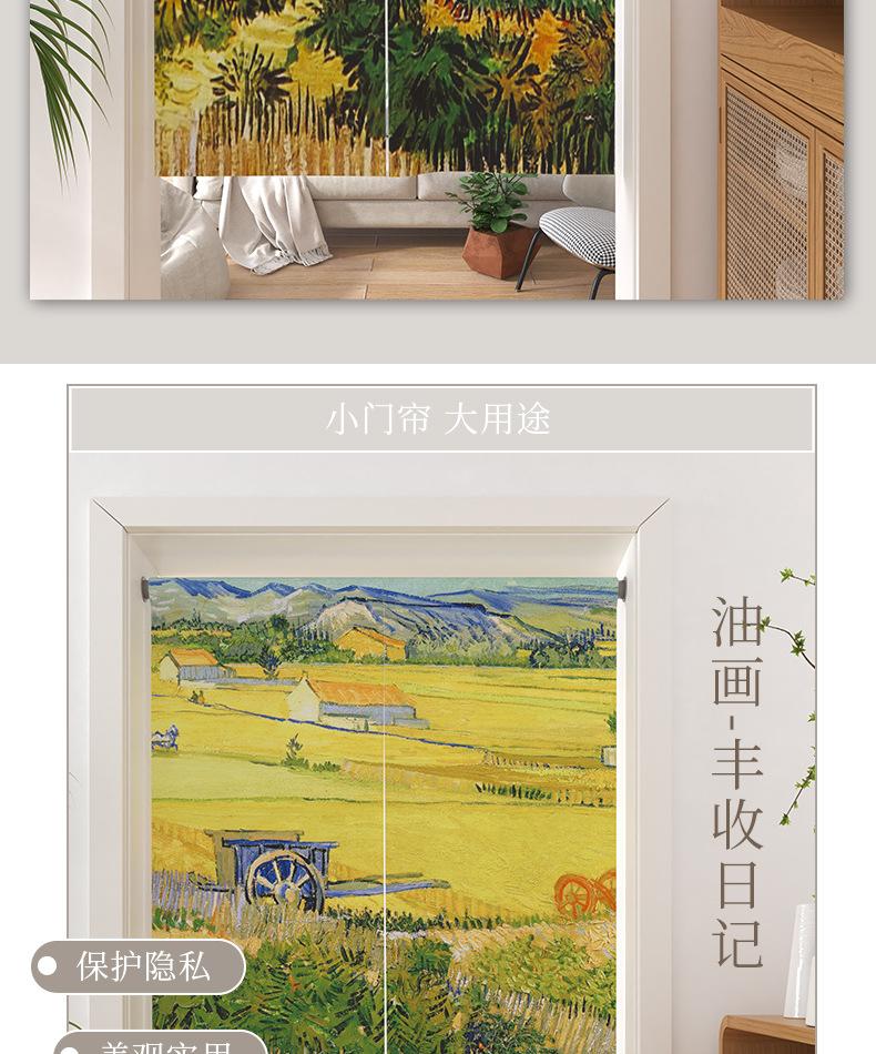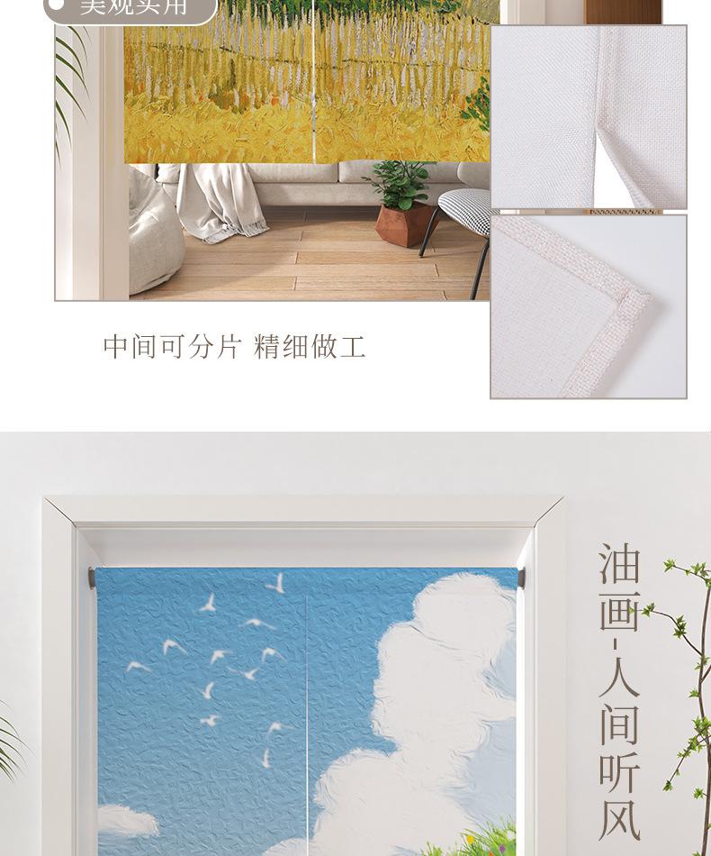 | Cortina de lino con diseño de girasol y pintura al óleo para puerta, cortina divisoria para habitación, cortina de bloqueo sin perforaciones, cortina de media cortina para cocina, dormitorio y sala de estar |