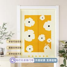 | Cortina de media puerta con dibujos animados, varilla perforada gratuita, velcro, cortina divisoria para habitación, bloqueo de impresión por transferencia térmica, cortina de lino para puerta |