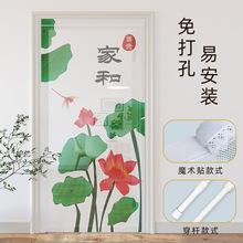 | Nueva cortina de puerta de tela de estilo chino con velcro, sin perforaciones, semibloqueante, para baño, cortina de puerta de imitación de algodón y lino para interiores del hogar |