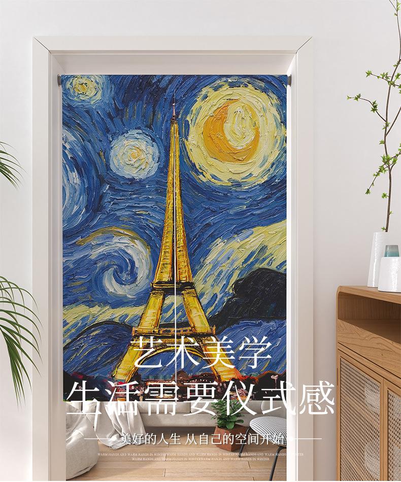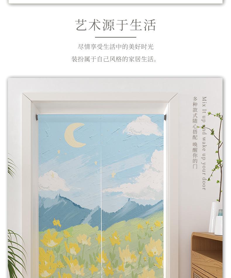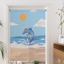| Cortina de lino para puerta, sin necesidad de perforar agujeros, cortina divisoria de habitación de estilo oceánico fresco, cortina bloqueadora con impresión de tela de dos piezas |