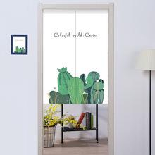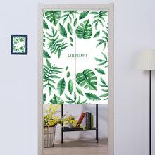 | Cortina de puerta de tela para vestidor con estampado de dibujos animados de plantas verdes en algodón y lino, cortina de partición de 2 piezas, cortina de puerta de estilo japonés, entrega de una pieza |