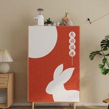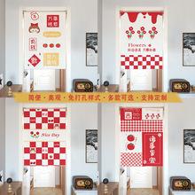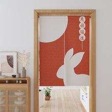 | Cortina de puerta de tela festiva roja con diseño de conejo, sencilla cortina divisoria de baño de lino, cortina de bloque entero dividida para el hogar |