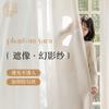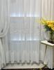 Cortina de gasa retro francesa, ligera, transparente, para ventana, para sala de estar, ventanal, color crema, jacquard, con relieve, de gasa blanca.