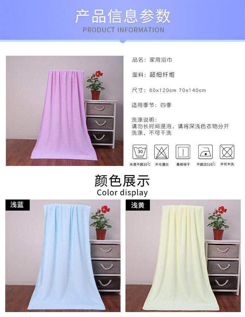 [Material] Esta es una toalla de microfibra de poliéster gofrado, una toalla de baño absorbente ordinaria delgada de 150g. Si tiene altos requisitos de calidad para la toalla de baño, puede elegir 200g-300g o 400g en la tienda, o puede contactar a nuestro servicio de atención al cliente.