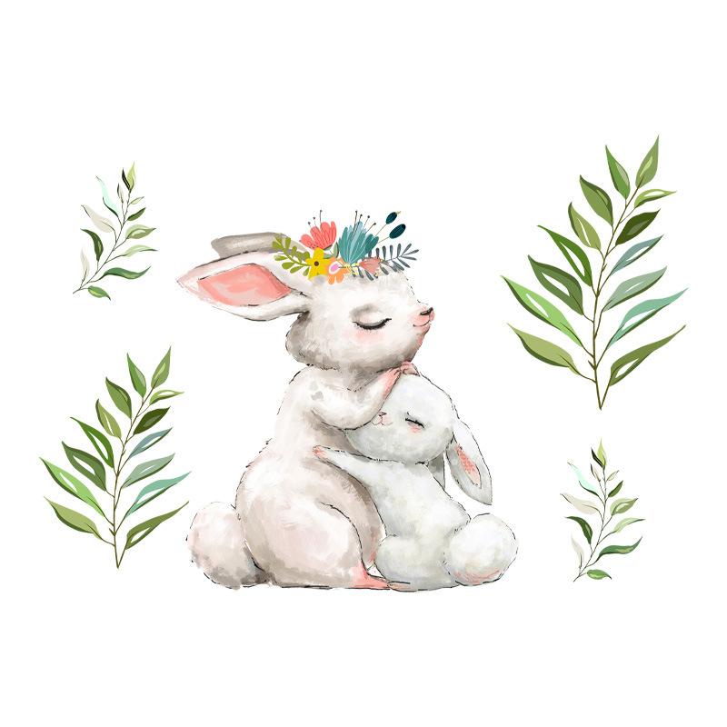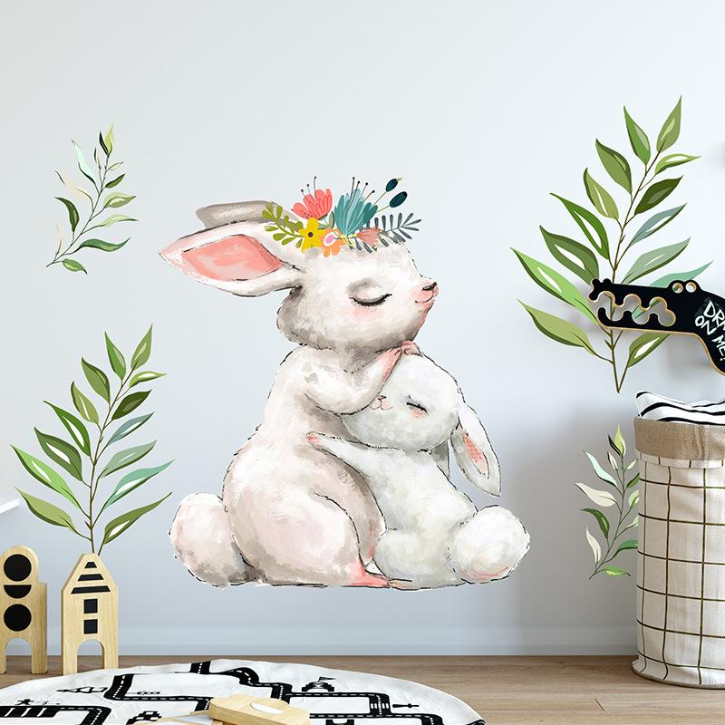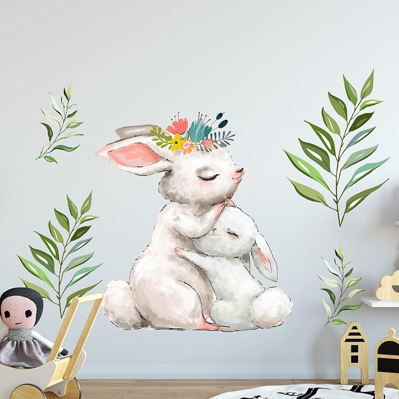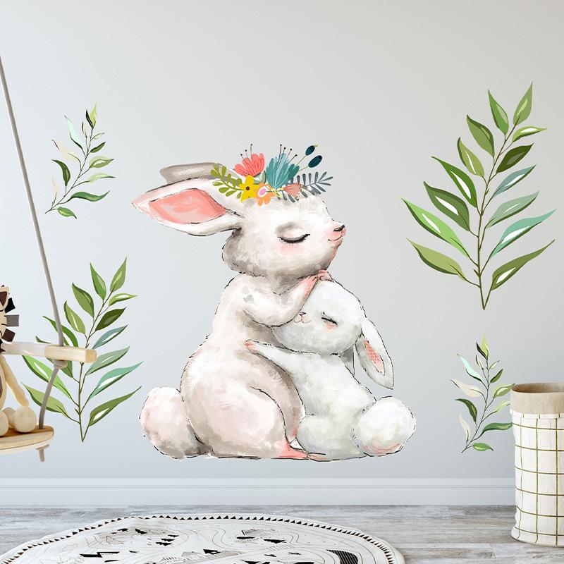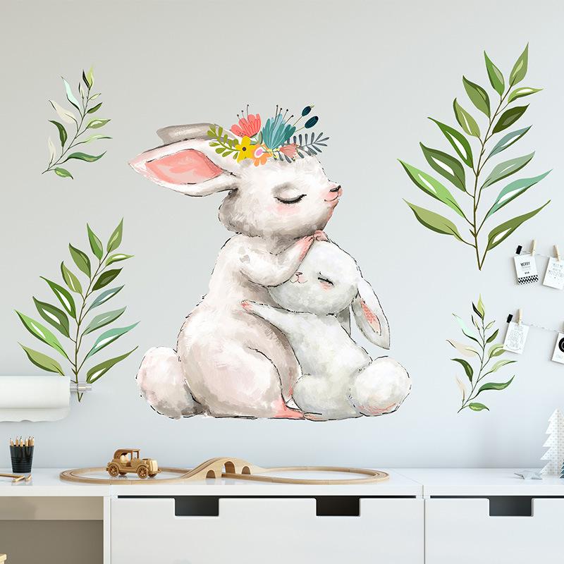 Pegatinas de pared con diseño de abrazo de conejo, para sala de estar, dormitorio, habitación infantil, pegatinas decorativas autoadhesivas