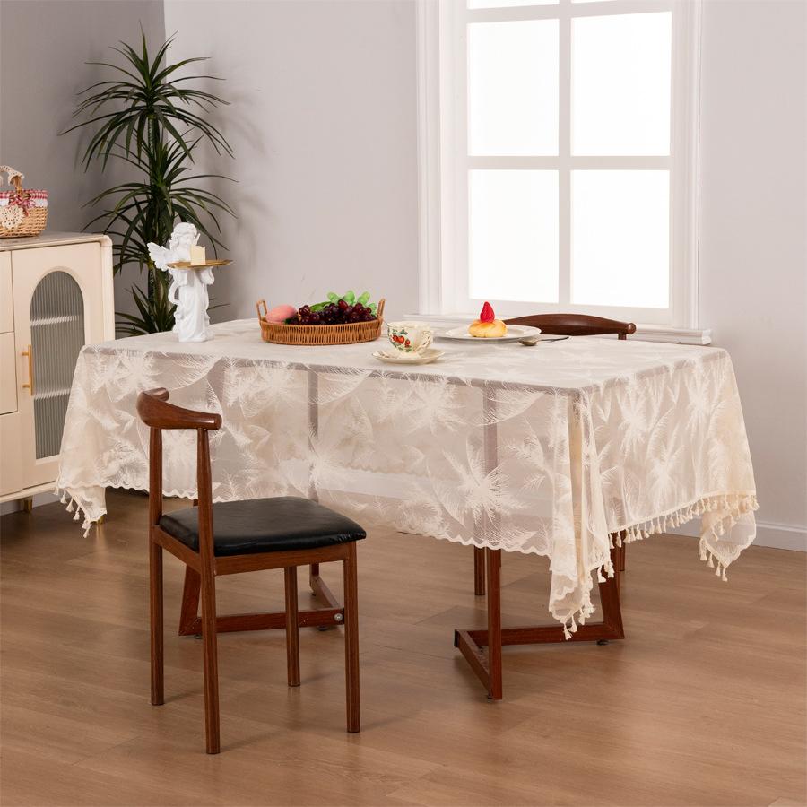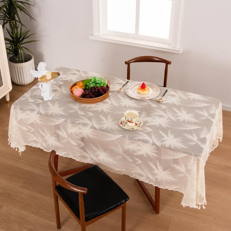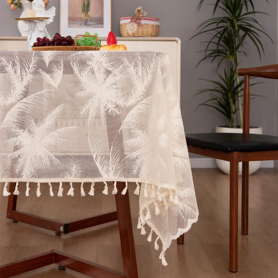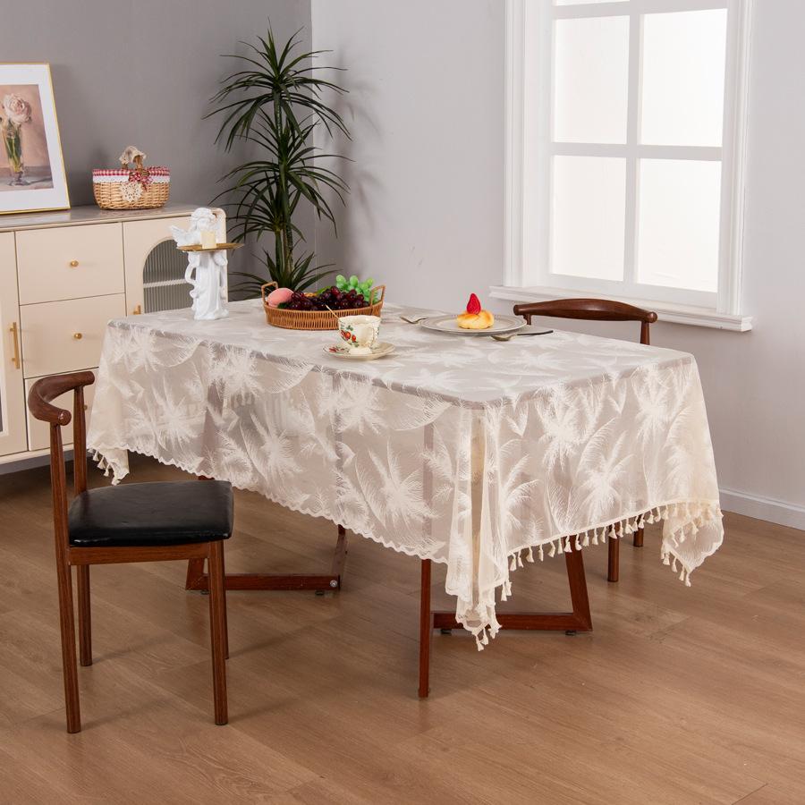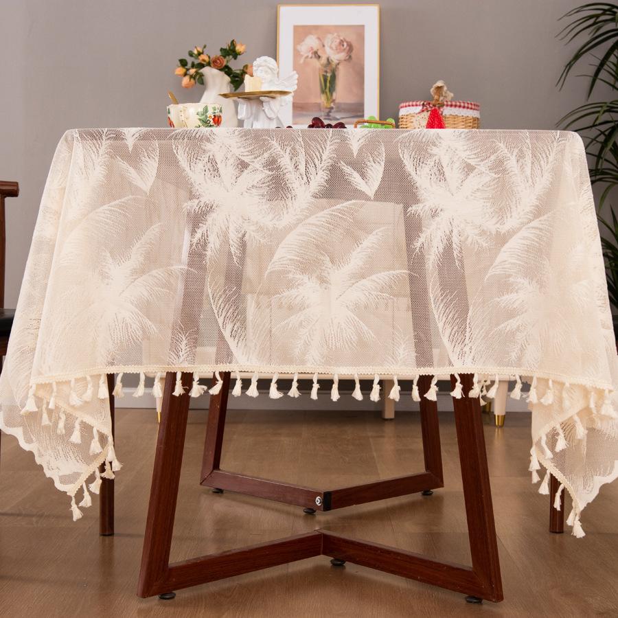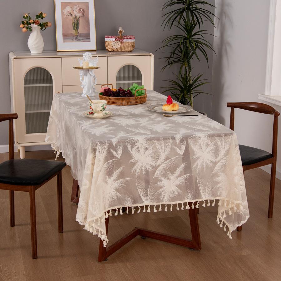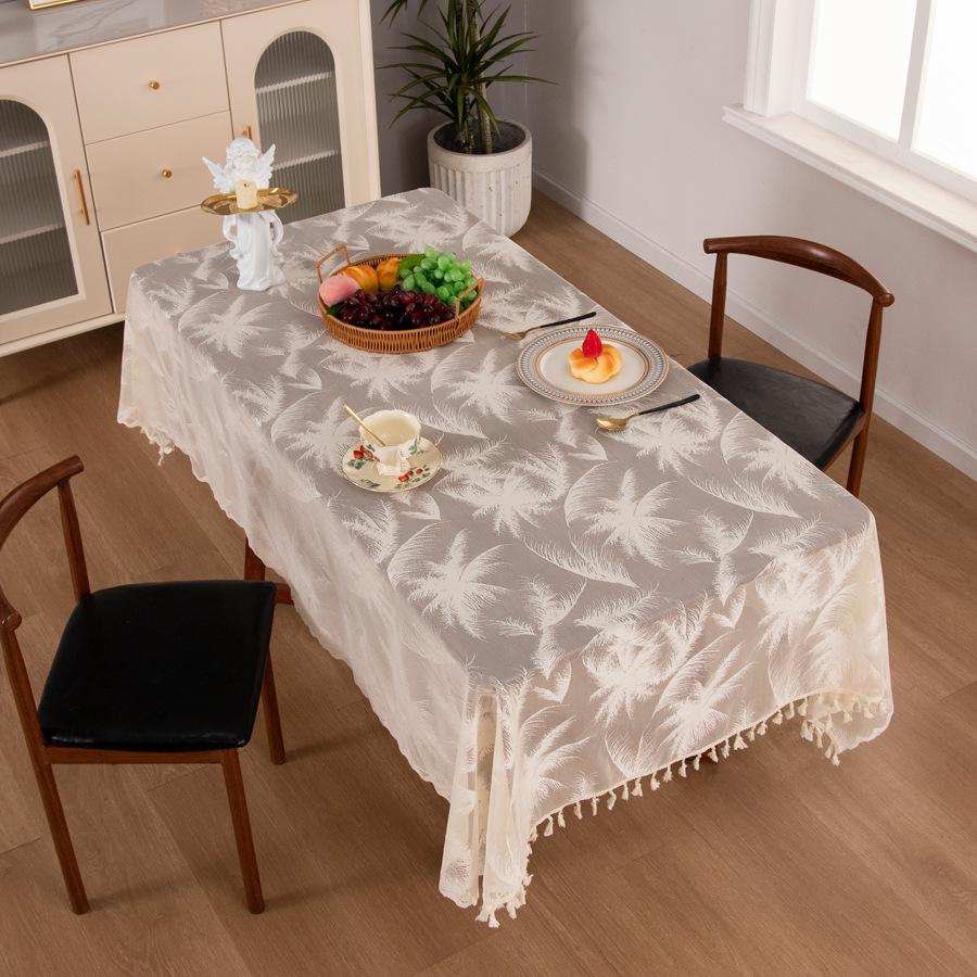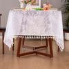 Nuevo mantel beige sencillo para el hogar, mantel rectangular de encaje con borlas de jacquard americano, mantel para mesa de centro