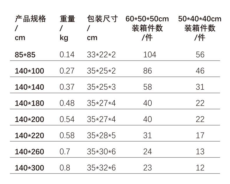 85*85, 140*100, 140*140, 140*180, 140*200, 140*220, 140*260, 140*300, Customized special shooting, no refund, no change