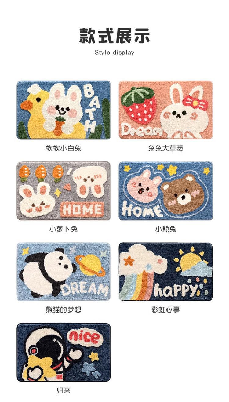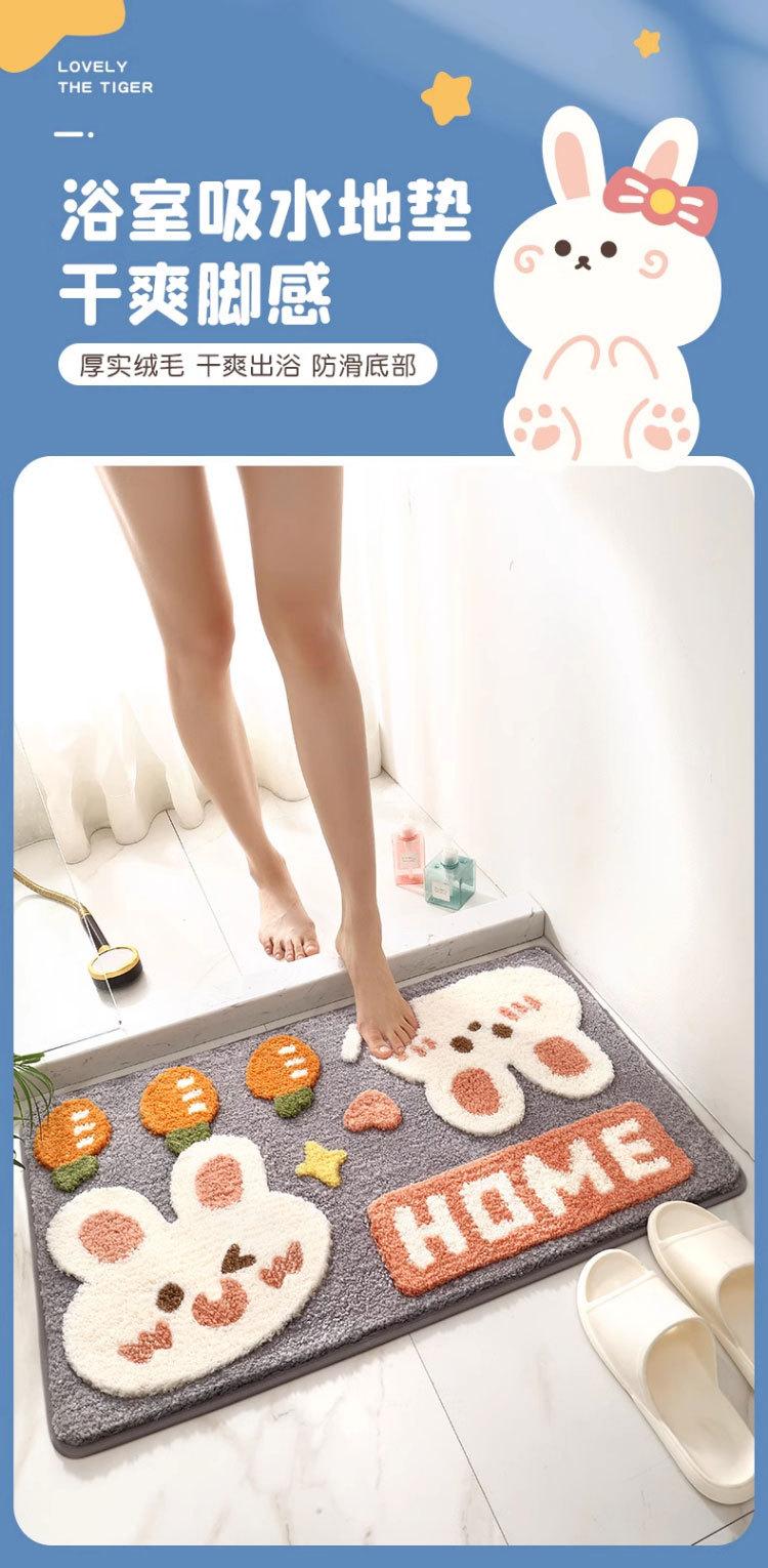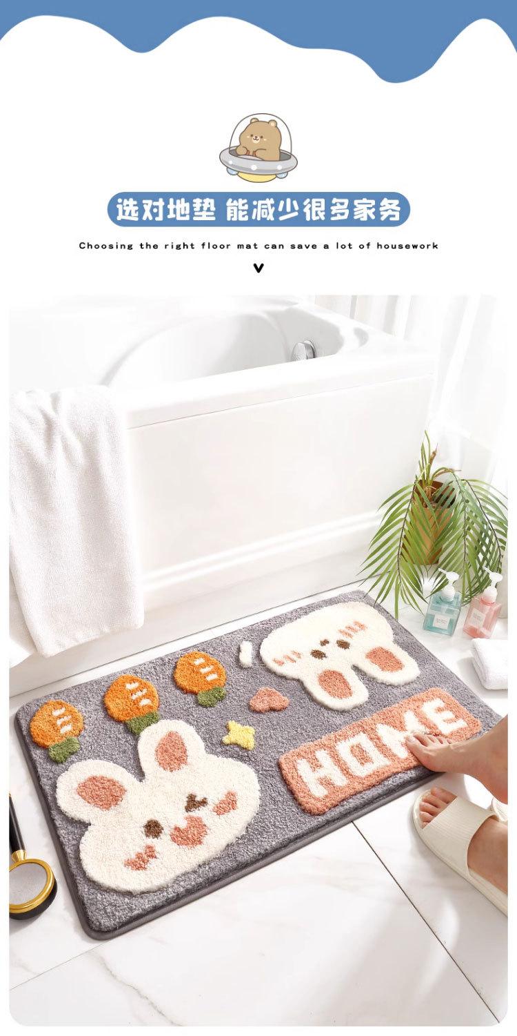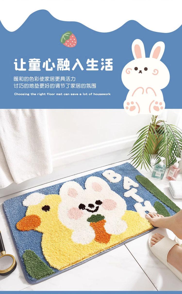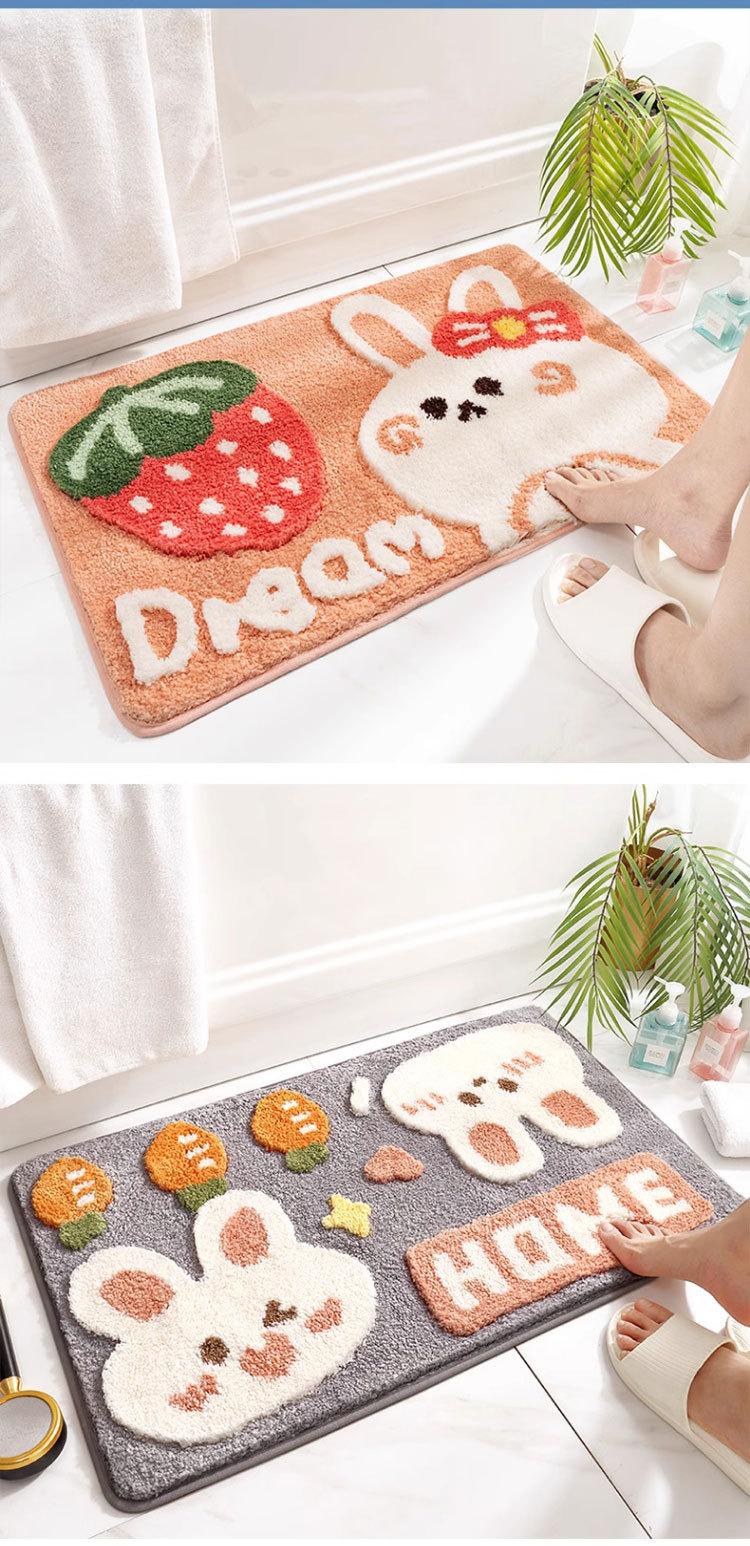 Tapete de Piso Conejo de Dibujos Animados Baño Absorbente Tapete para Pies Baño Hogar Inodoro Puerta Alfombra Baño Tapete Antideslizante