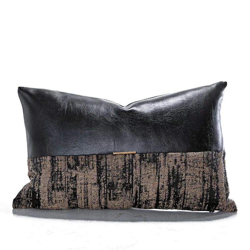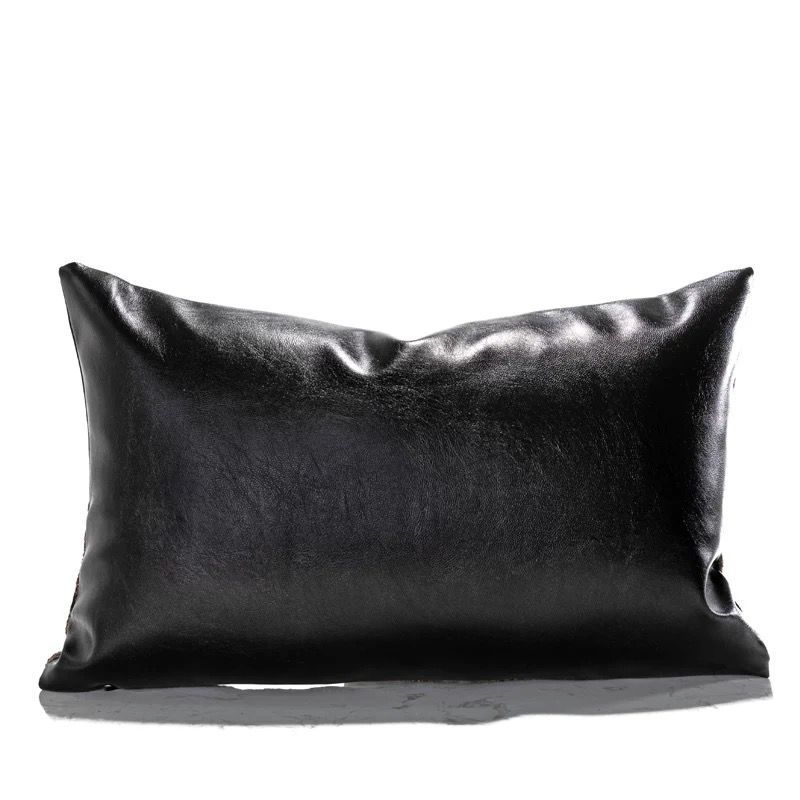 Black leather patchwork waist pillow
