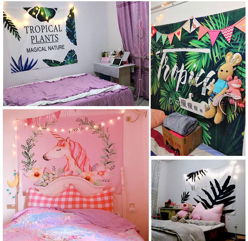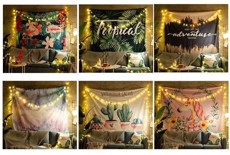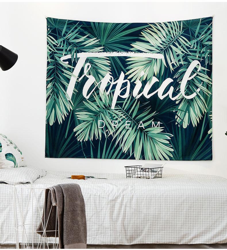 Tapiz de tela con fondo nórdico, planta verde, para colgar en la pared, diseño de habitación, mesita de noche, pintura decorativa, tapiz de celebridades de Internet en vivo
