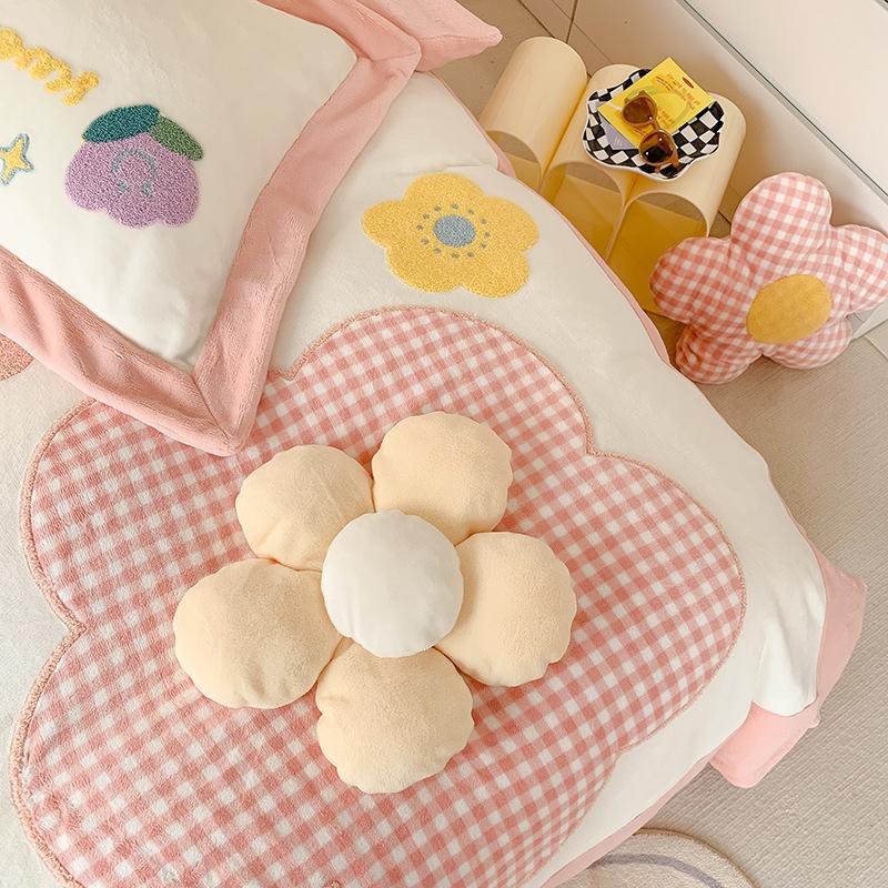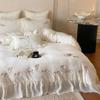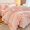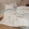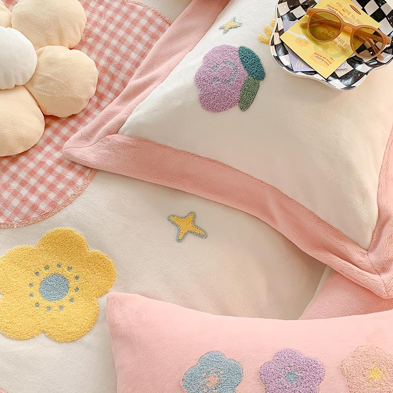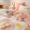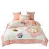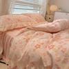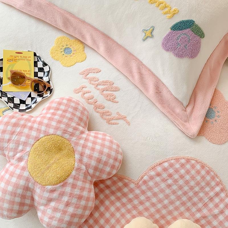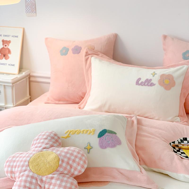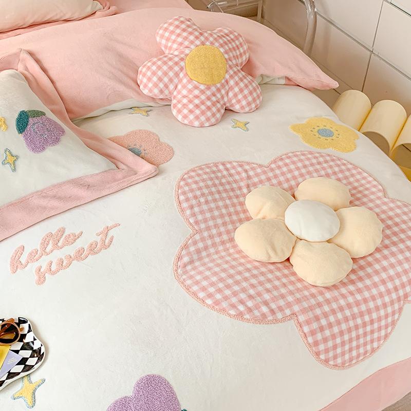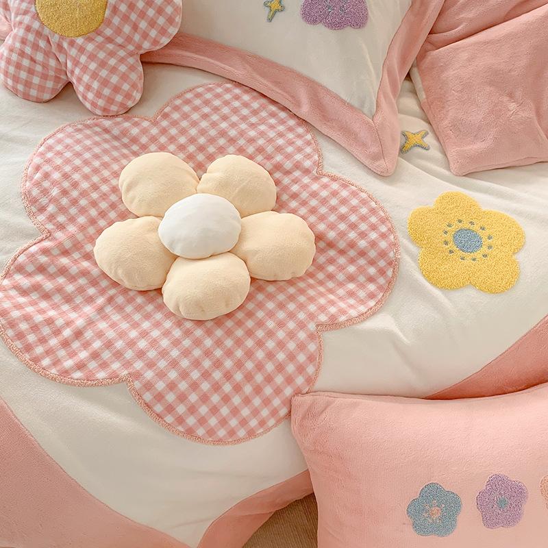 Edredón de terciopelo coral de cuatro piezas con diseño de princesa coreana, tridimensional, con flores y leche, de franela gruesa, para otoño e invierno