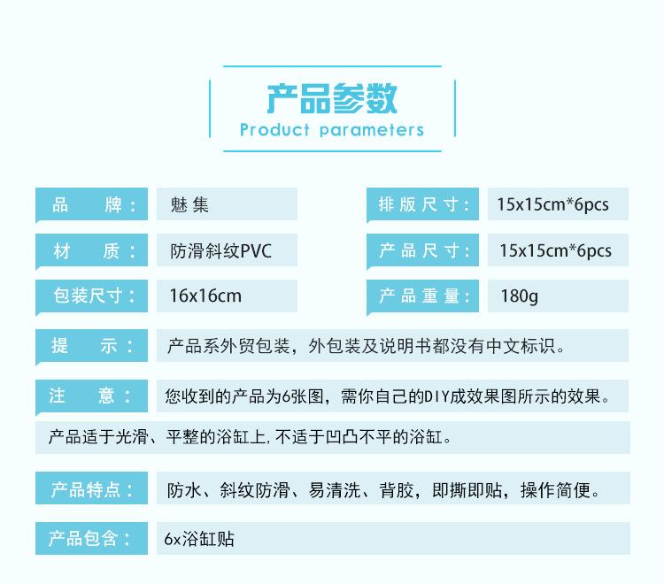 La fábrica de origen de pegatinas antideslizantes de sarga para bañera creativa, un proveedor estable de plataformas de comercio exterior, los pedidos de fábrica se envían en 24 días, y la personalización está disponible según dibujos y tamaños. Mei Ji invita sinceramente a franquiciados ideales de todos los rincones del mundo, bienvenidos a llamar para consulta y compra de pegatinas antideslizantes de simulación 3D para bañera.