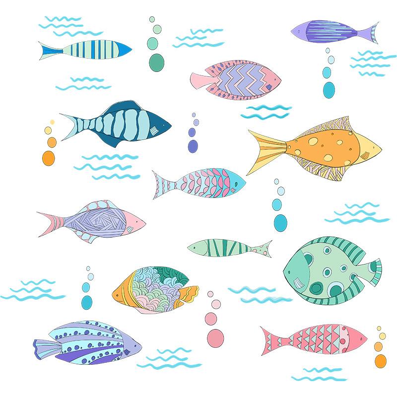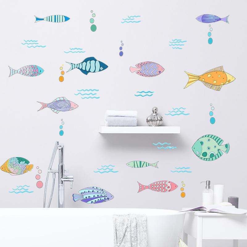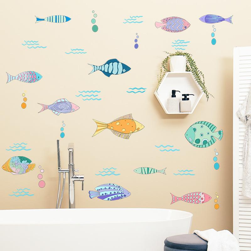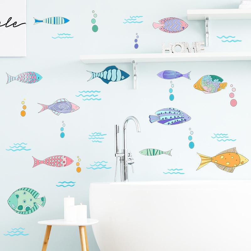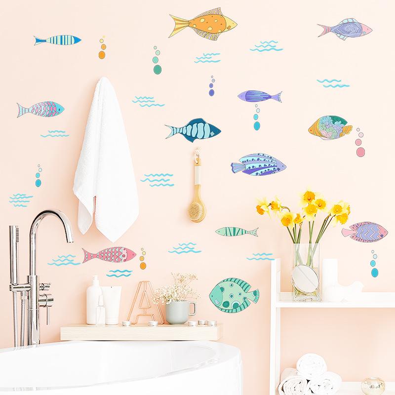 Nuevo LD63009 dibujos animados pintados pequeños peces de agua patrón de habitación de los niños jardín de infantes baño decoración del hogar pegatinas de pared de PVC
