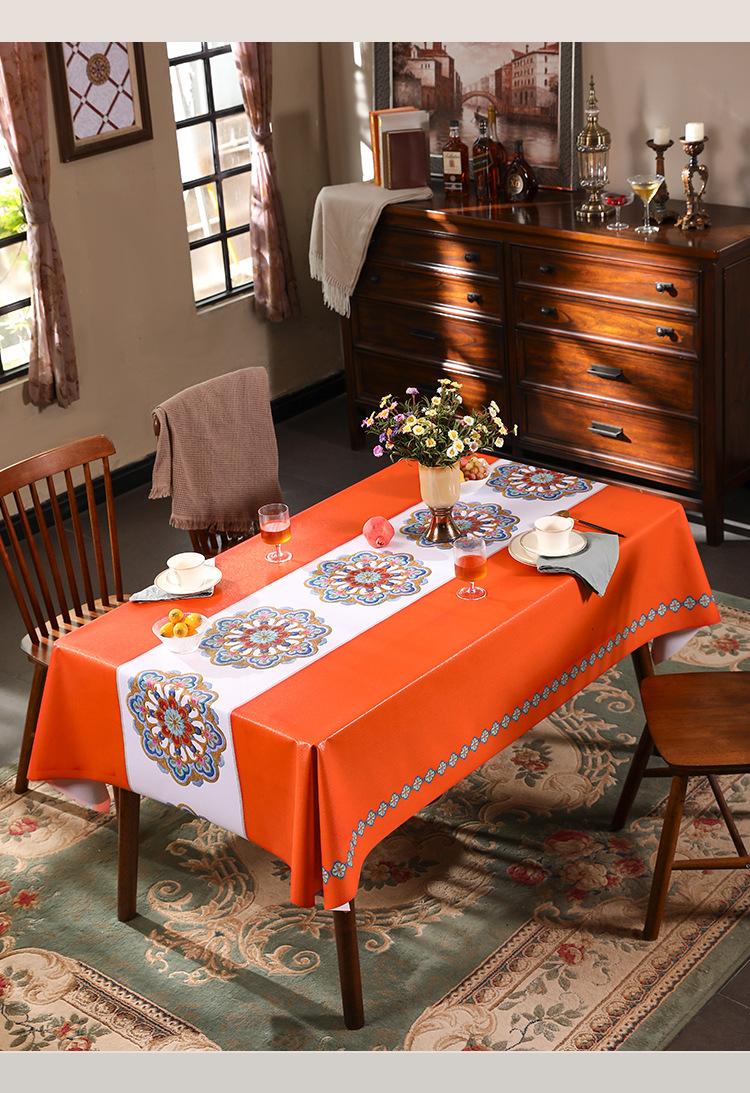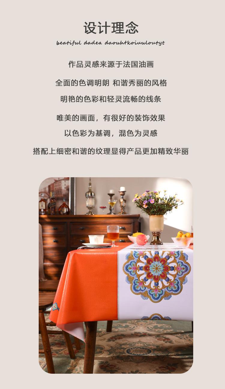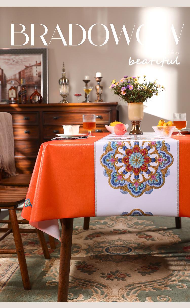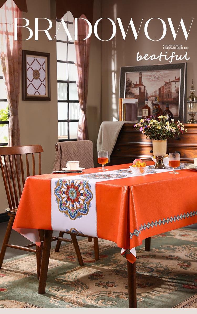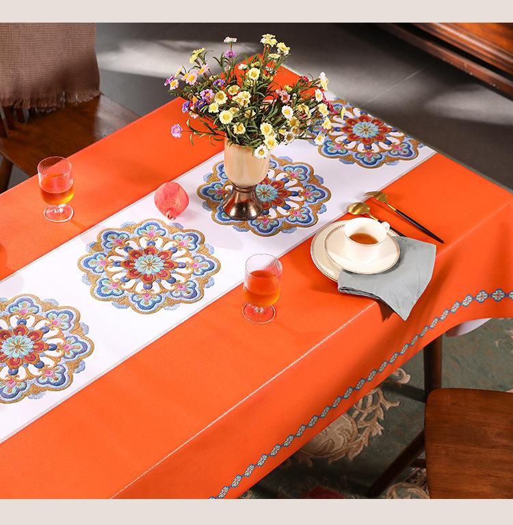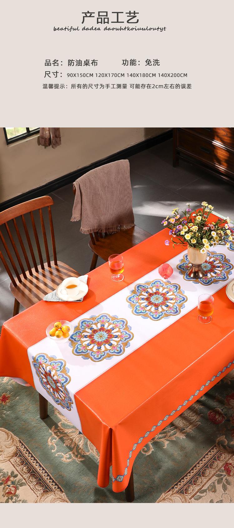Mantel de PVC rectangular con bordado de imitación nórdica, venta al por mayor, resistente al viento, impermeable, antiaceite y antiescaldadura, para mesa de centro