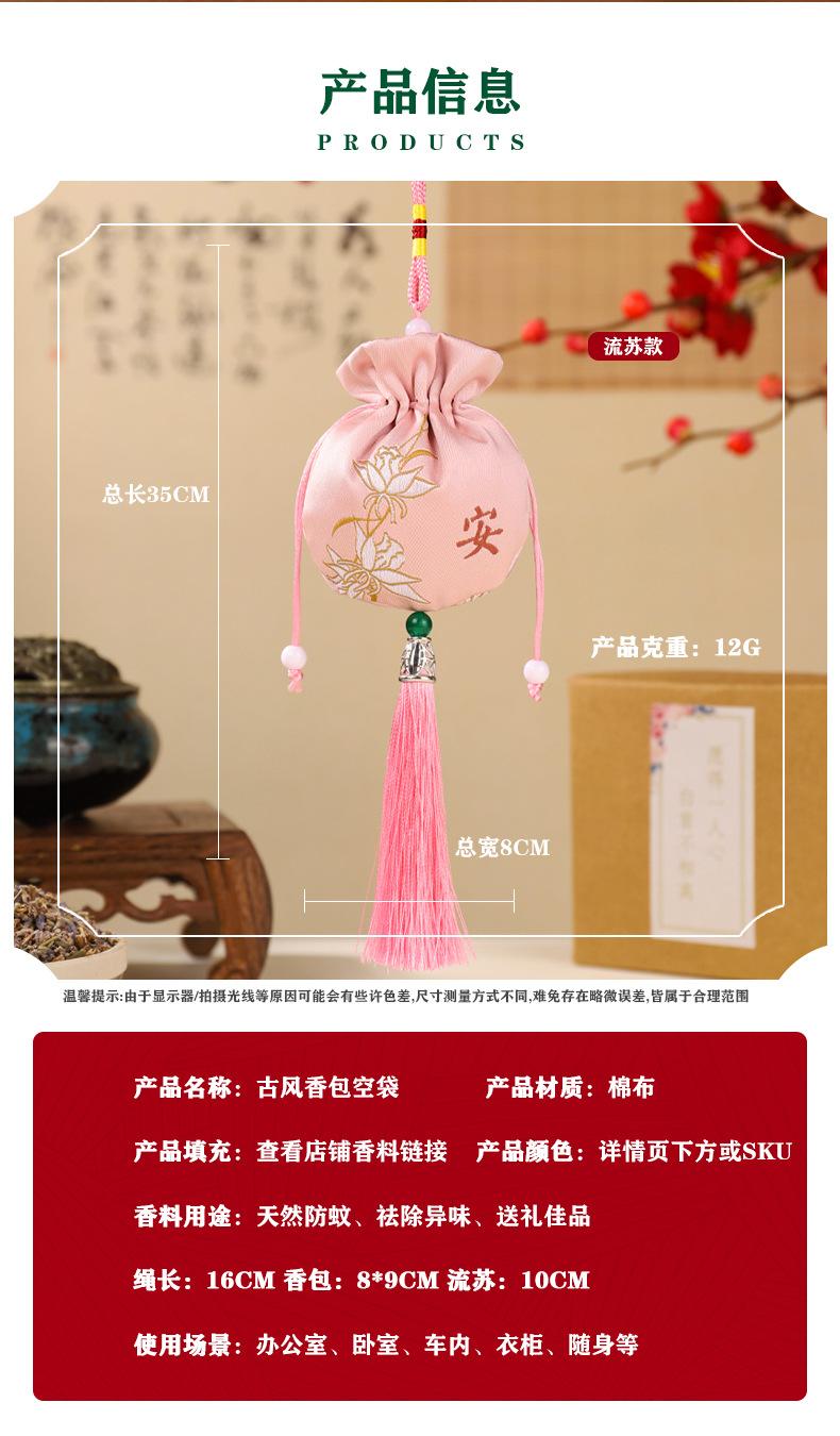 Style random hair-QK antique sackets [38]], Antique-QK Joy Pink Sachet, Antique-QK Quiet Light Green Sachet, A...
