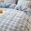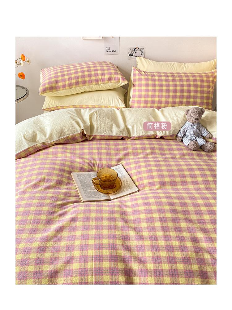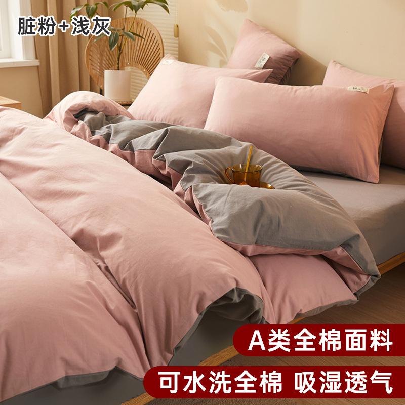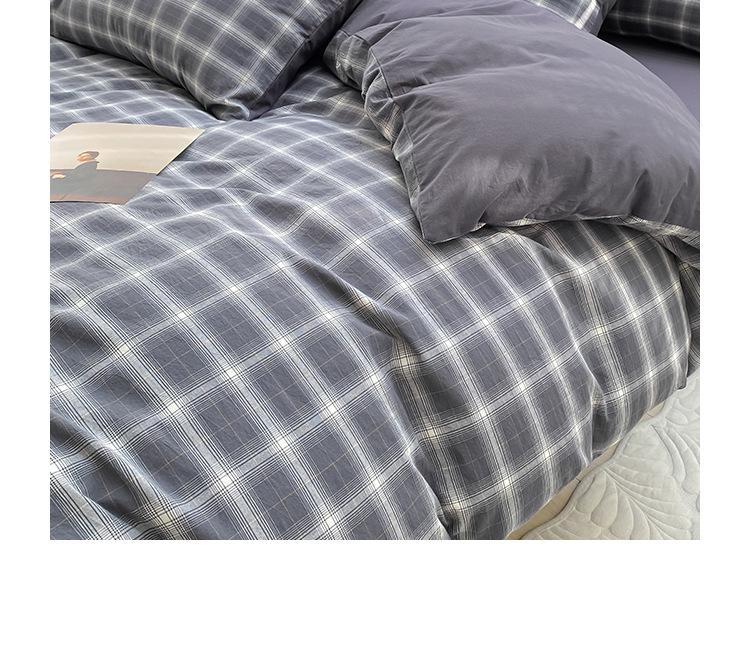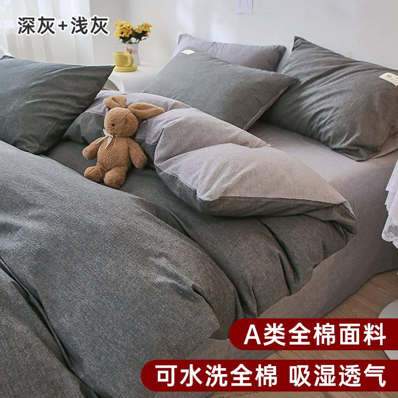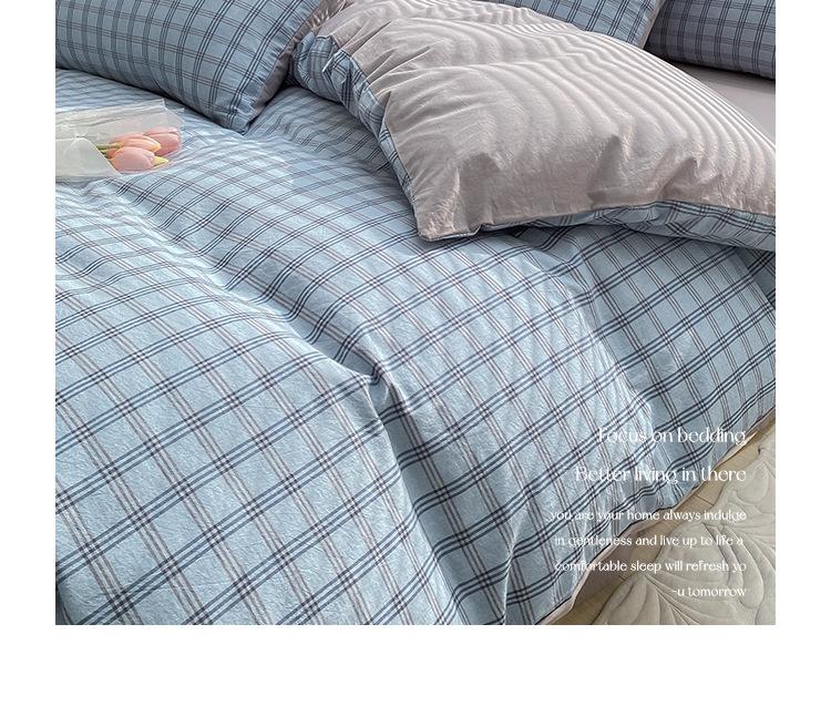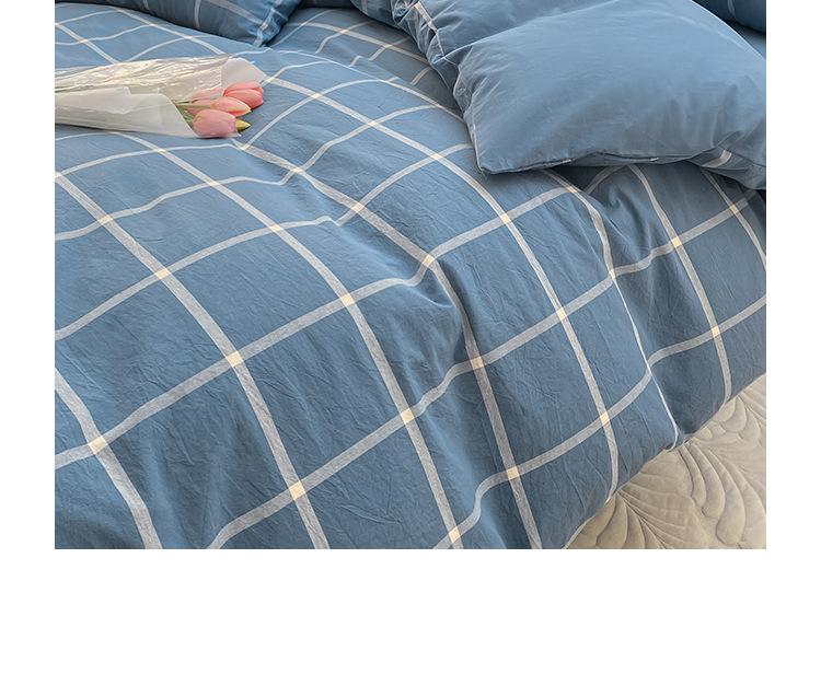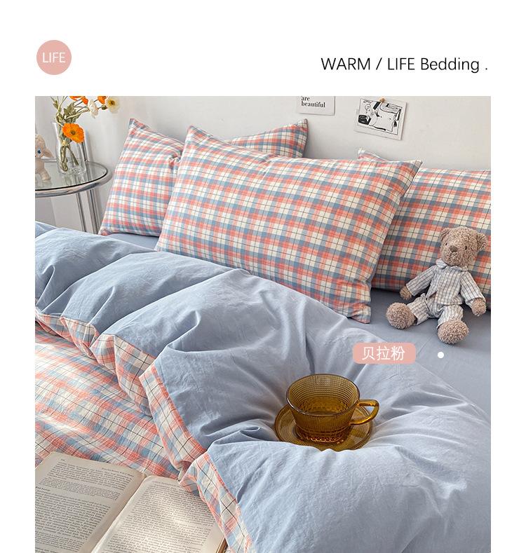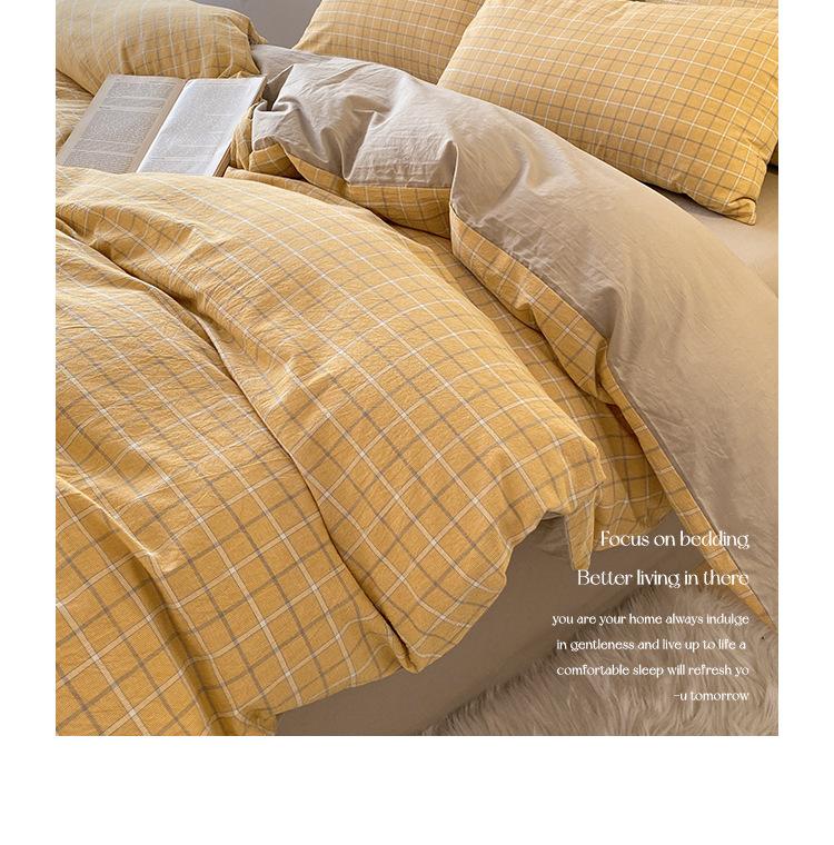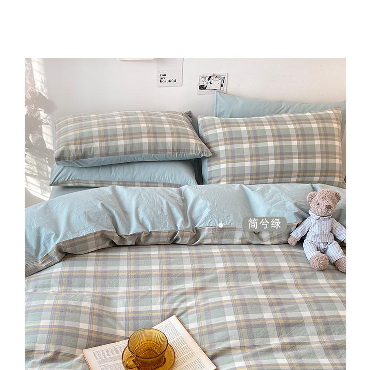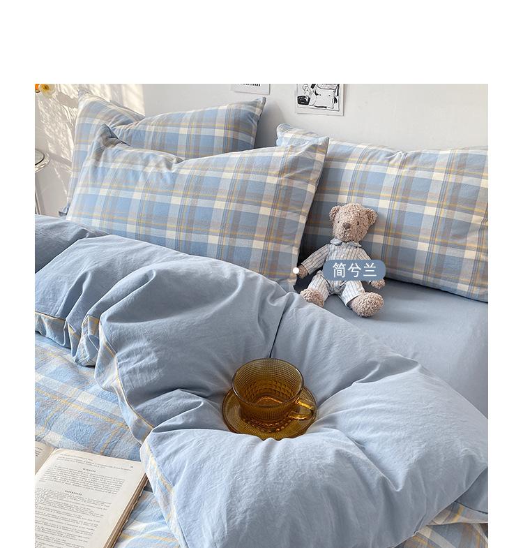 Juego de cuatro piezas de estilo japonés sin imprimir, sábana de algodón 100% lavado simple, funda de edredón, juego de cama de tres piezas, verano 4