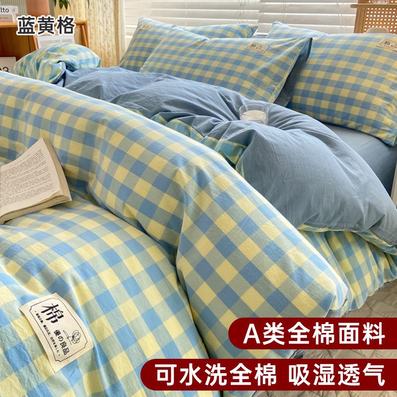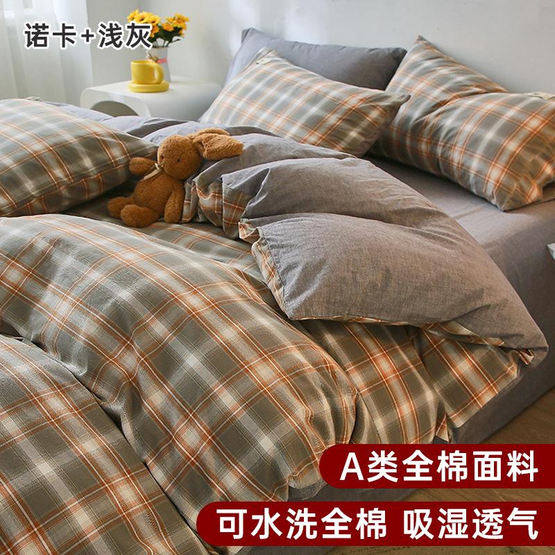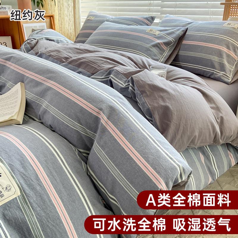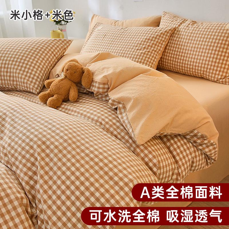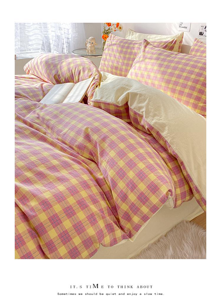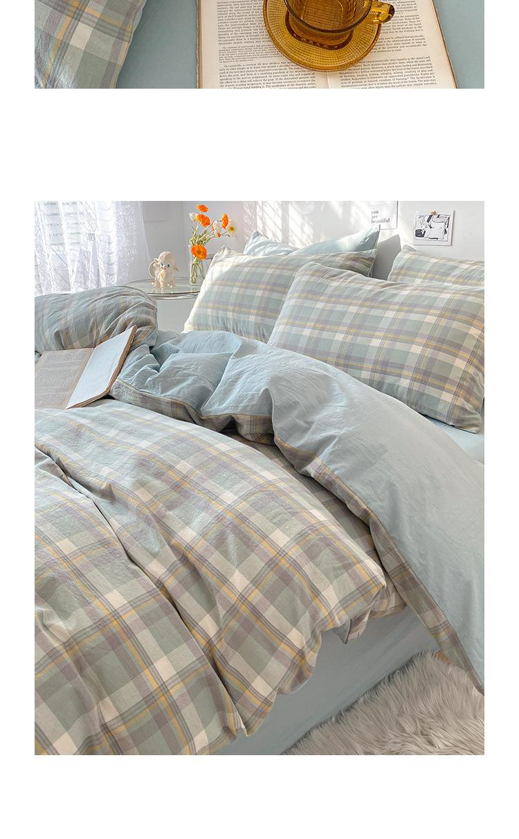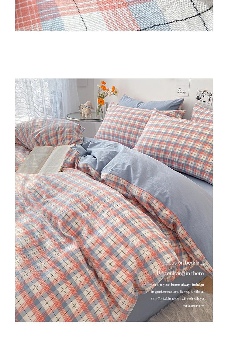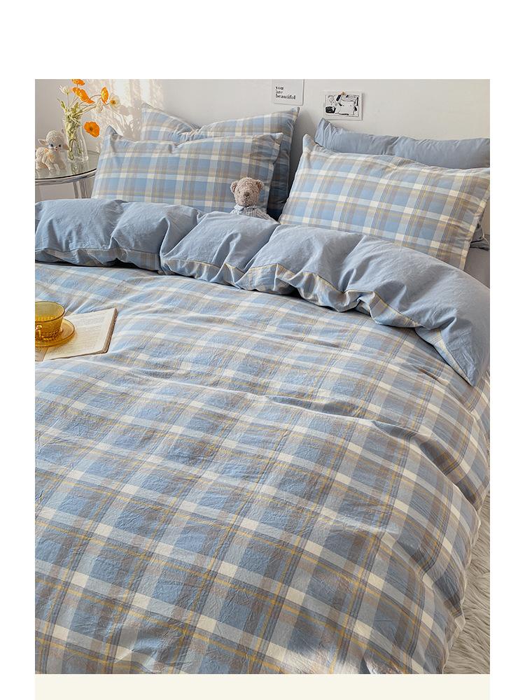 Juego de cuatro piezas de estilo japonés sin imprimir, sábana de algodón 100% lavado simple, funda de edredón, juego de cama de tres piezas, verano 4