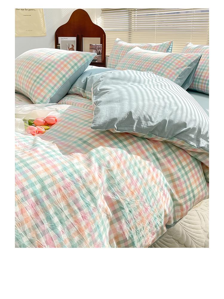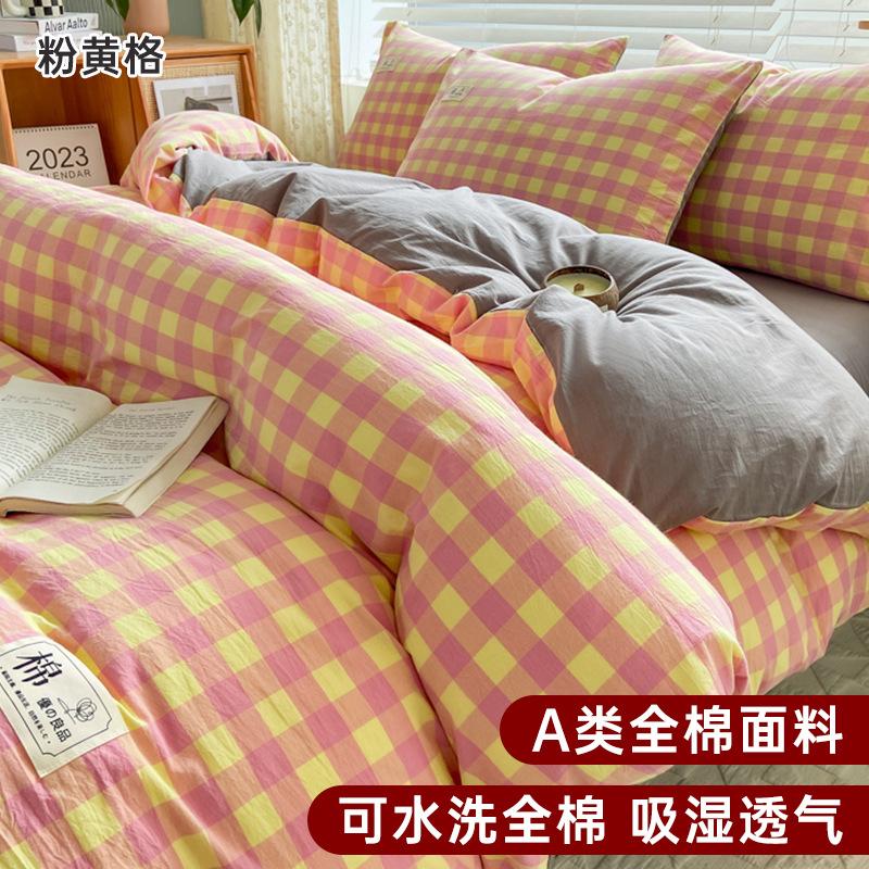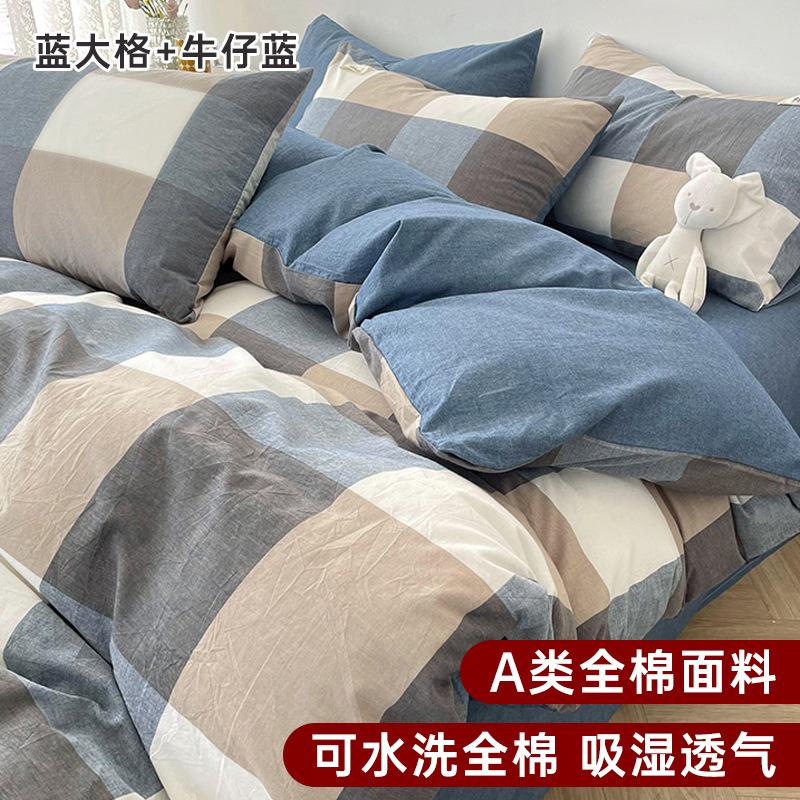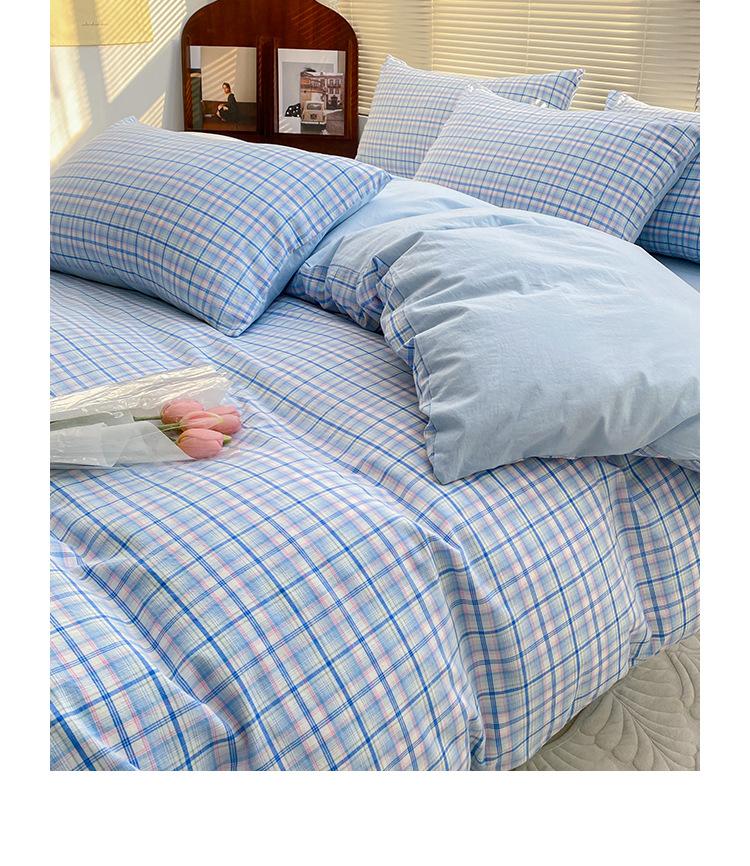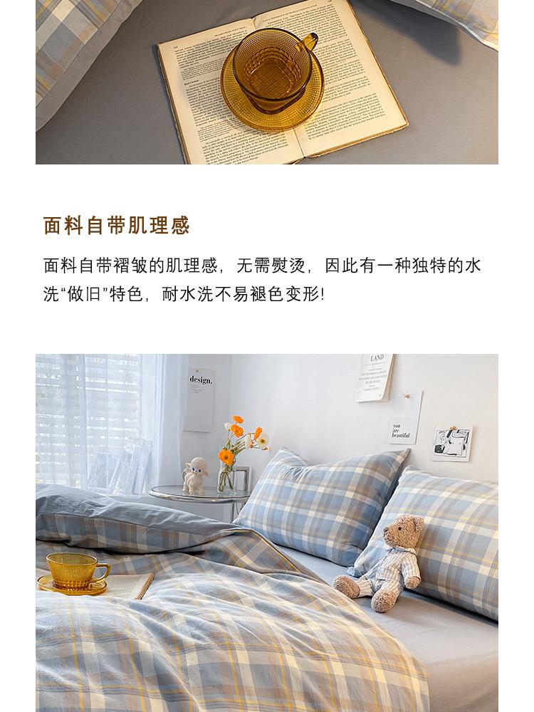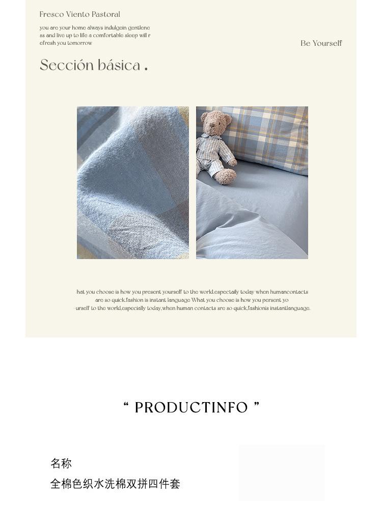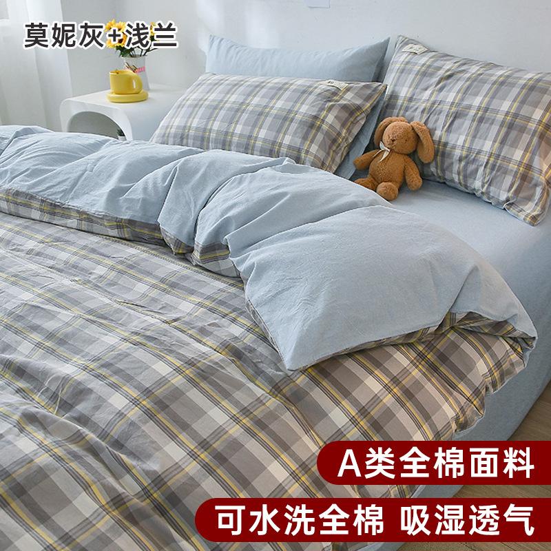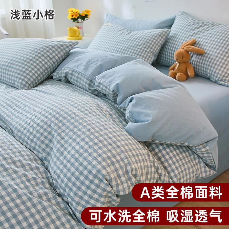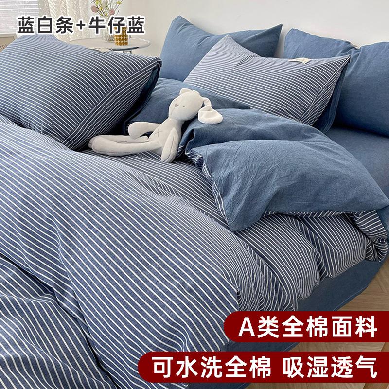 Juego de cuatro piezas de estilo japonés sin imprimir, sábana de algodón 100% lavado simple, funda de edredón, juego de cama de tres piezas, verano 4