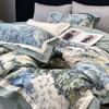 100 Algodón Aksu de fibra larga de cuatro piezas de algodón ligero de lujo con estampado digital, sábana, funda de edredón, ropa de cama