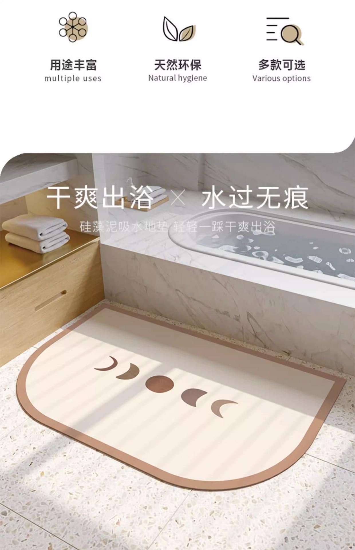 Alfombra absorbente de diatomeas suave para baño, de secado rápido, para el hogar, antideslizante, para puerta de inodoro