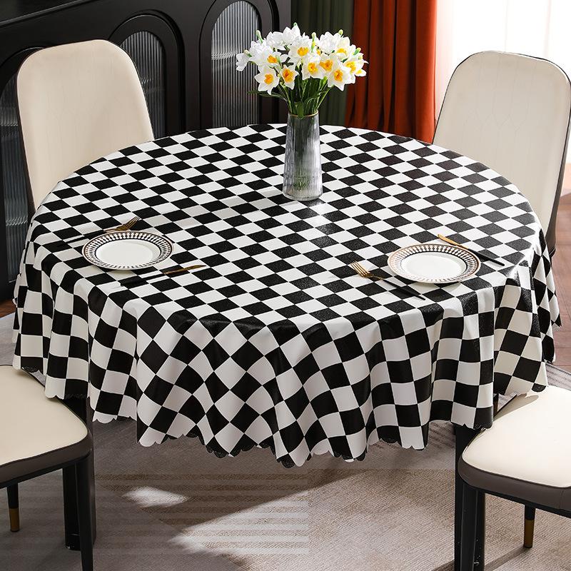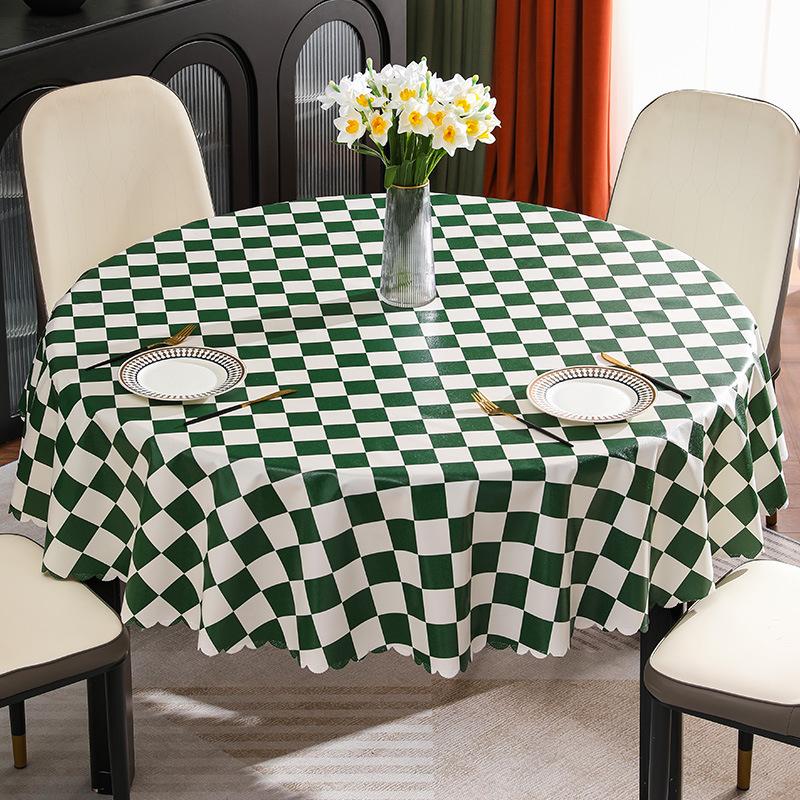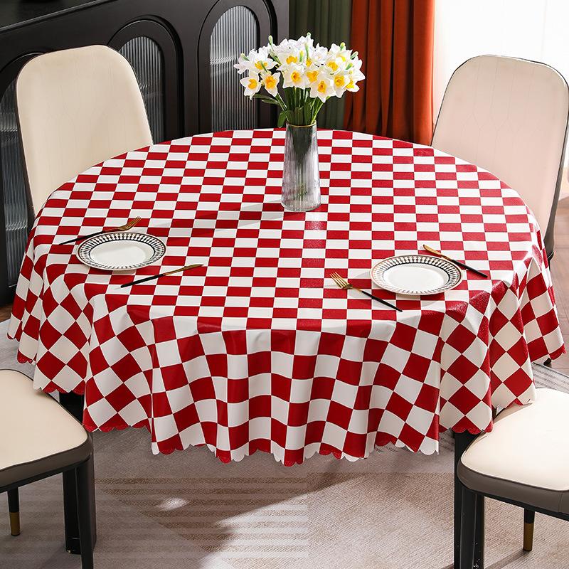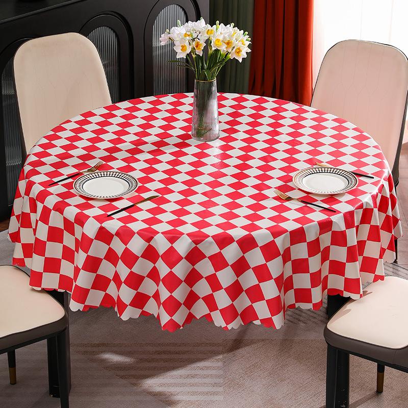 Mantel de PVC impermeable y resistente al aceite con estampado de cuadros escoceses, redondo, grueso y desechable.