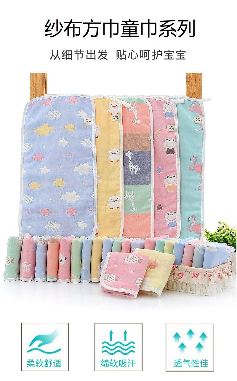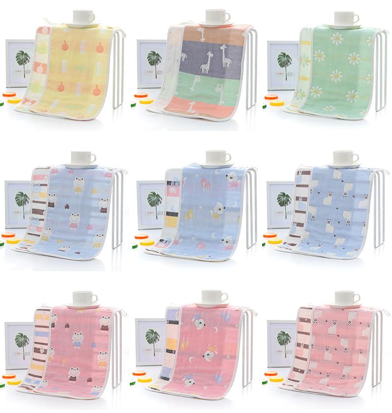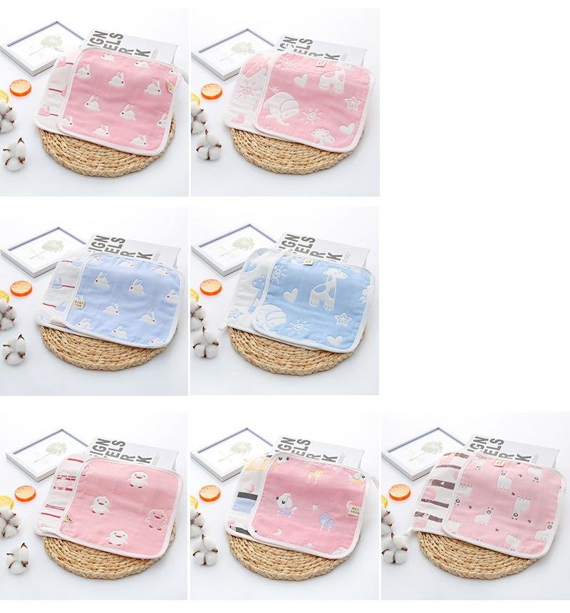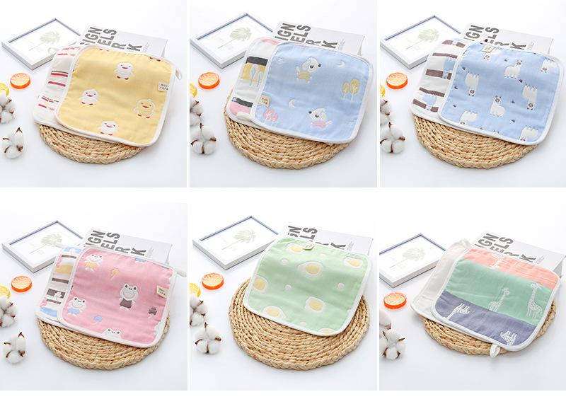 Toalla de Mano de Gasa de Seis Capas Algodón Puro Toalla Cuadrada Toalla para Saliva de Jardín de Niños Algodón Dibujos Animados Gancho Toalla Pequeña Venta al por Mayor
