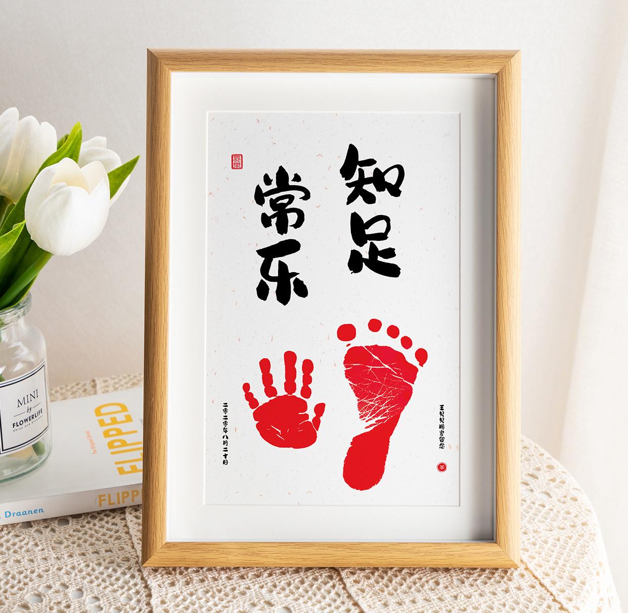 Marco de fotos conmemorativo de 100 días con huella de mano y pie de bebé de un año Marco conmemorativo de huella de mano y pie para niños Marco decorativo de pared A3A4