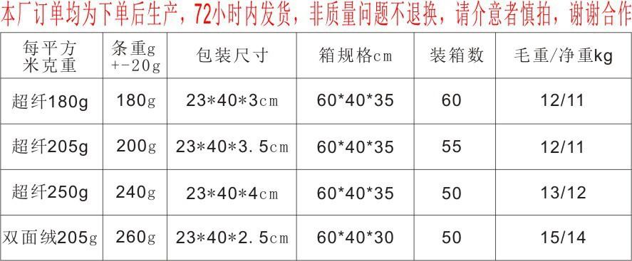 Microfiber 150X75CM 250g, Microfiber 150X75CM 280g, Double-sided velvet 160X80CM