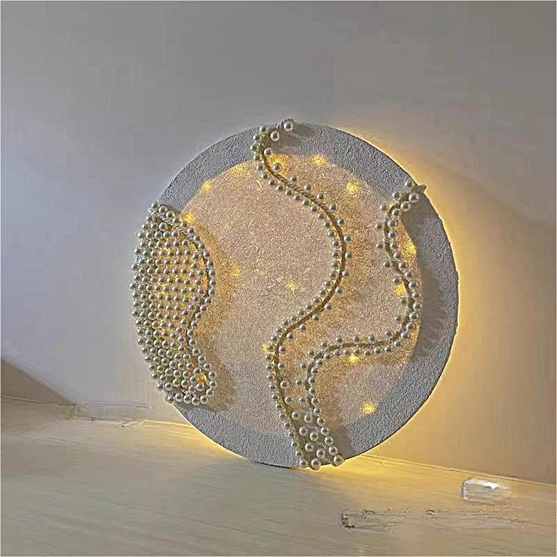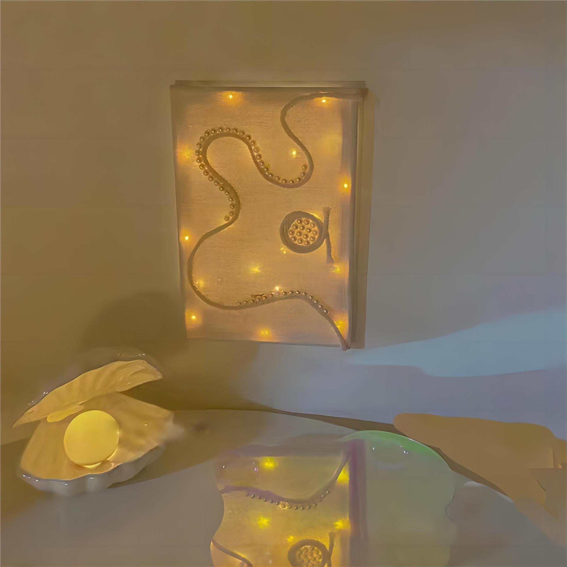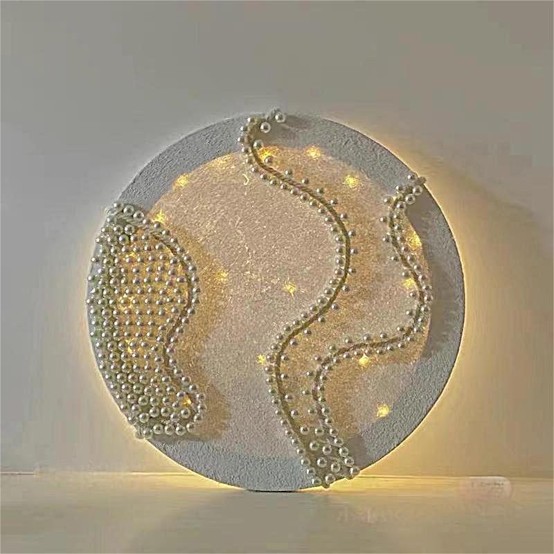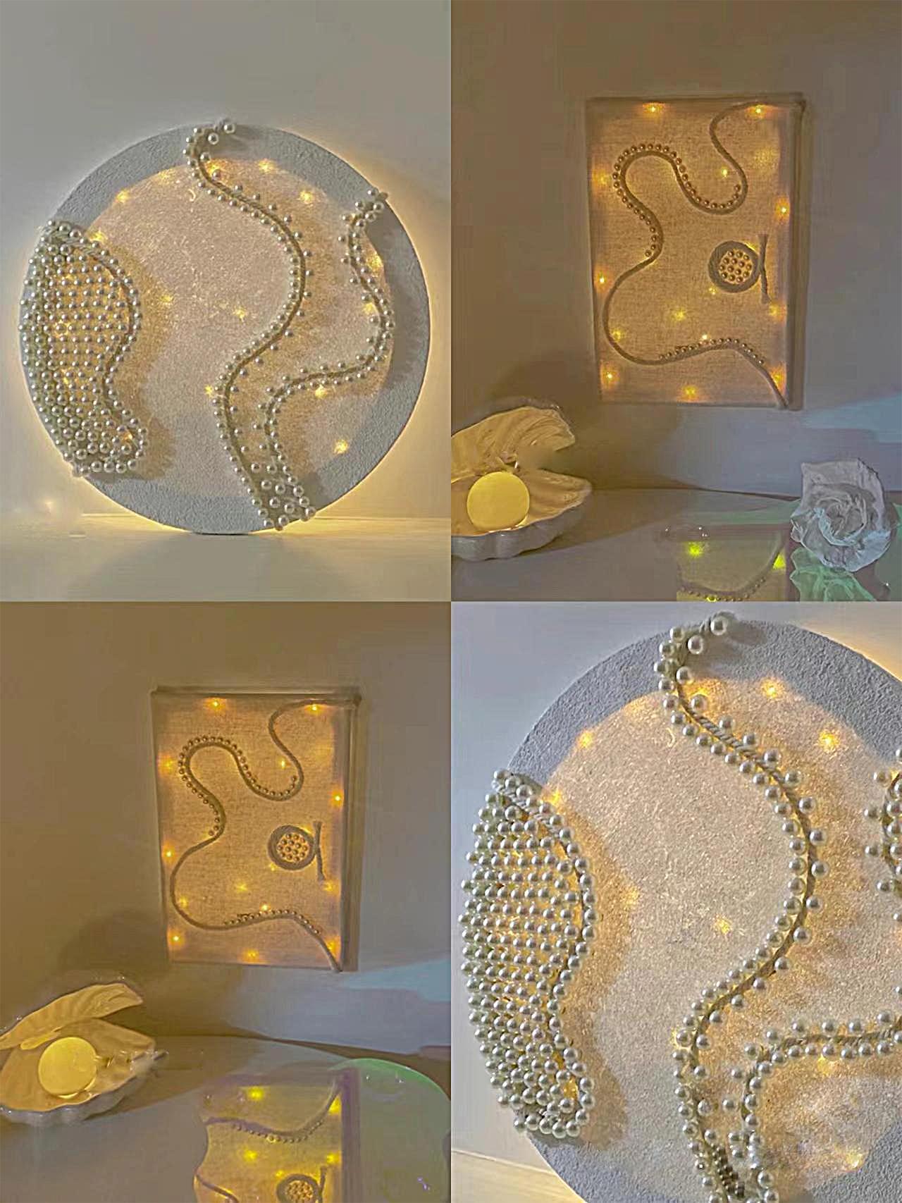 Round hemp rope pearl painting night light, Square hemp rope pearl painting night light, Add a pearl