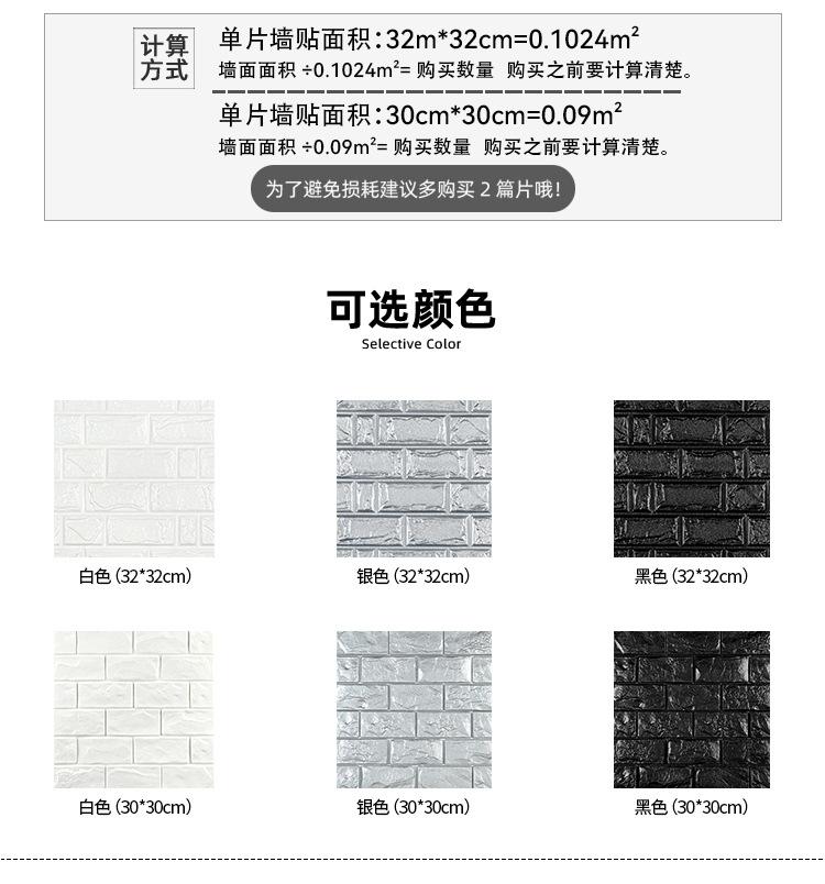 Pegatinas de pared 3D transfronterizas al por mayor, papel tapiz autoadhesivo de tamaño pequeño de 35 x 38,5, bolsa suave, papel tapiz adhesivo impermeable para pared