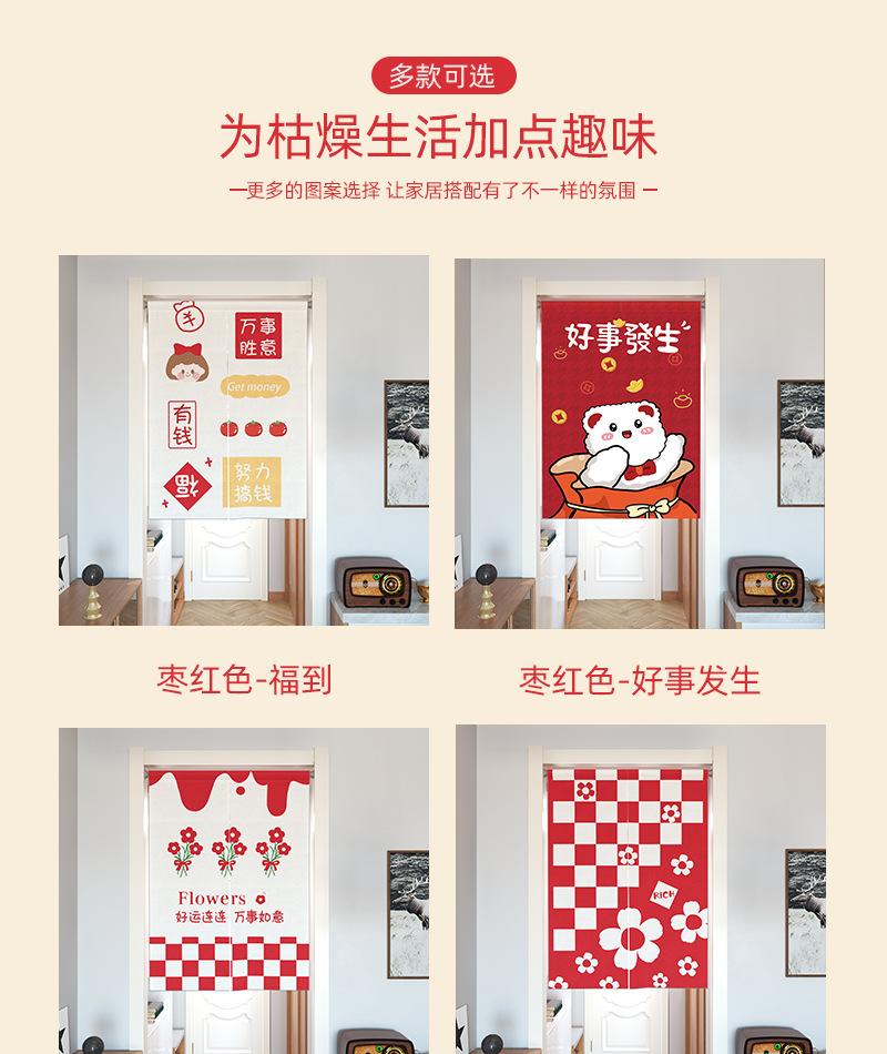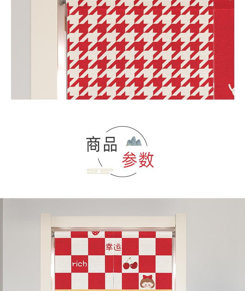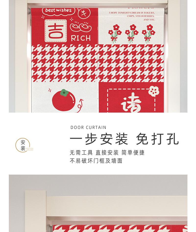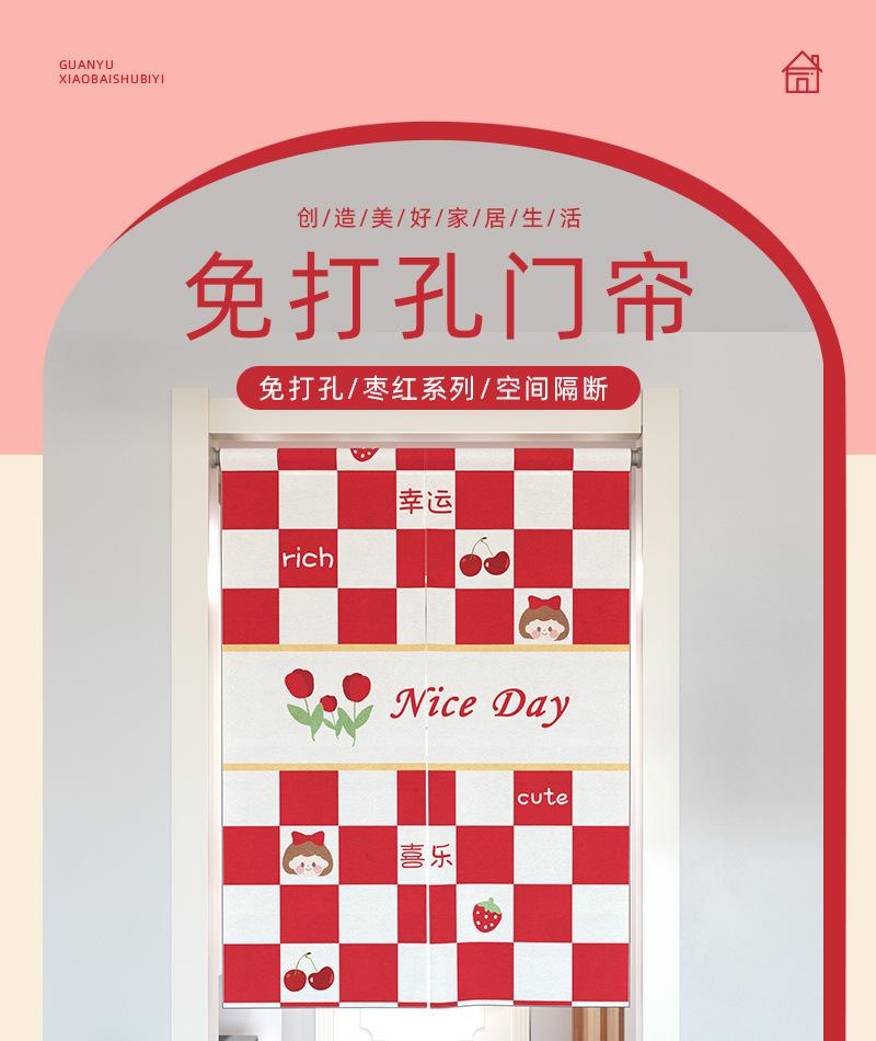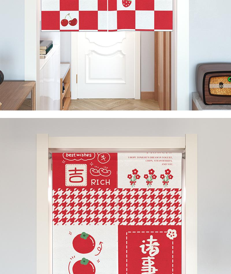 Cortina de puerta festiva roja, tela sin perforaciones, media cortina, cortina divisoria para dormitorio, cocina, cortina de baño