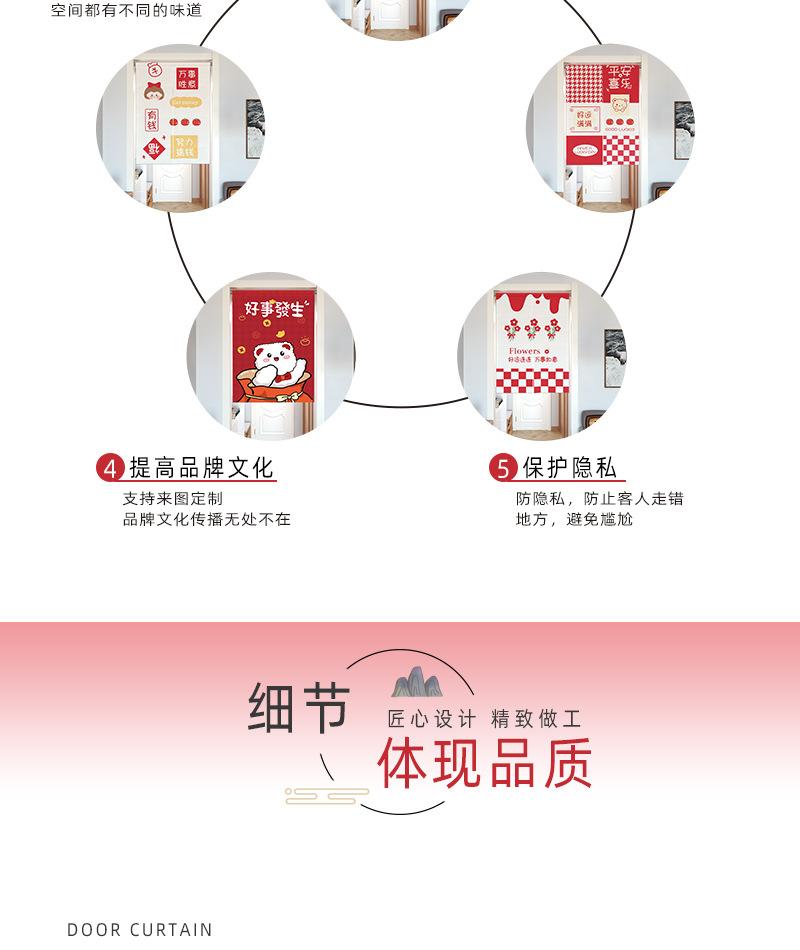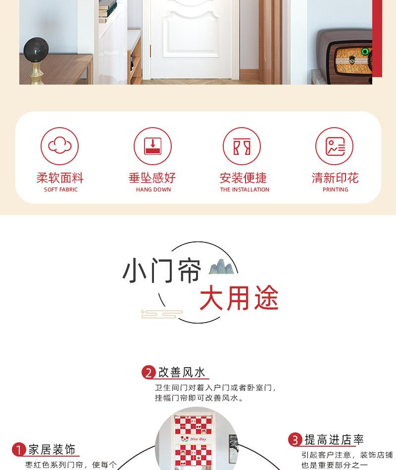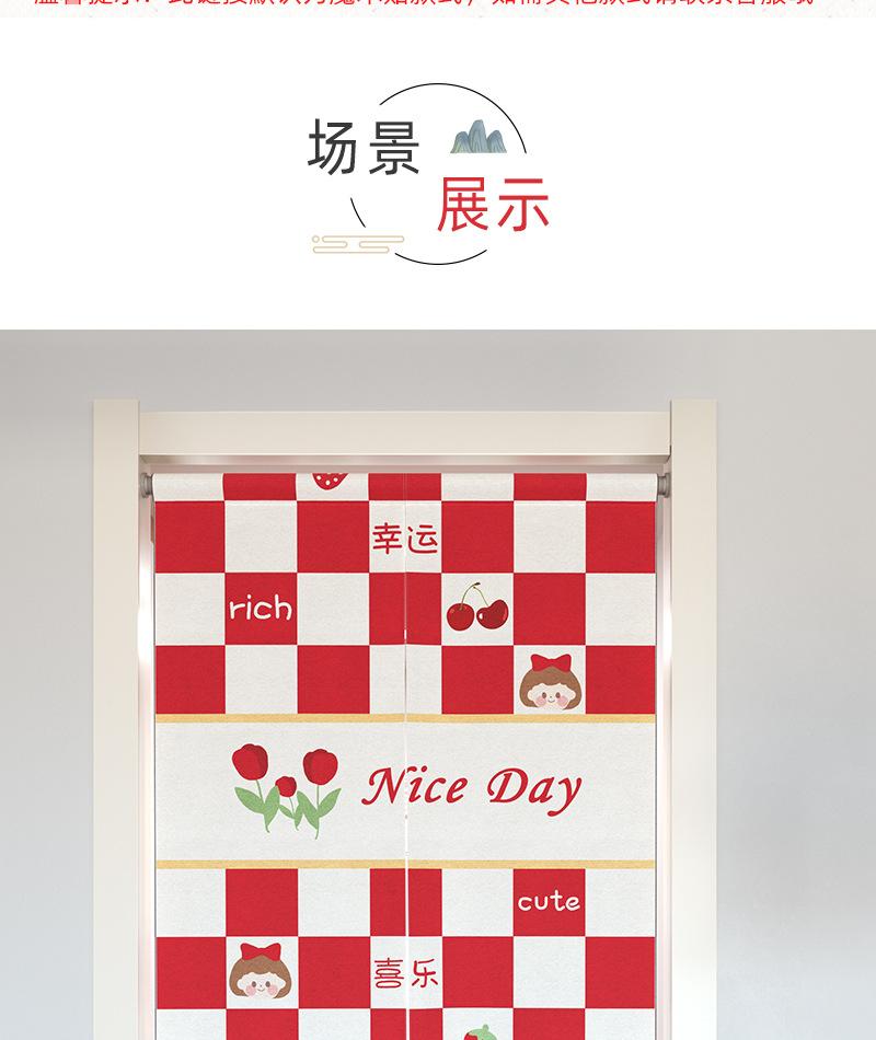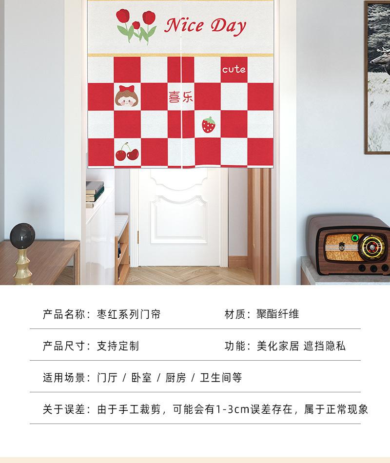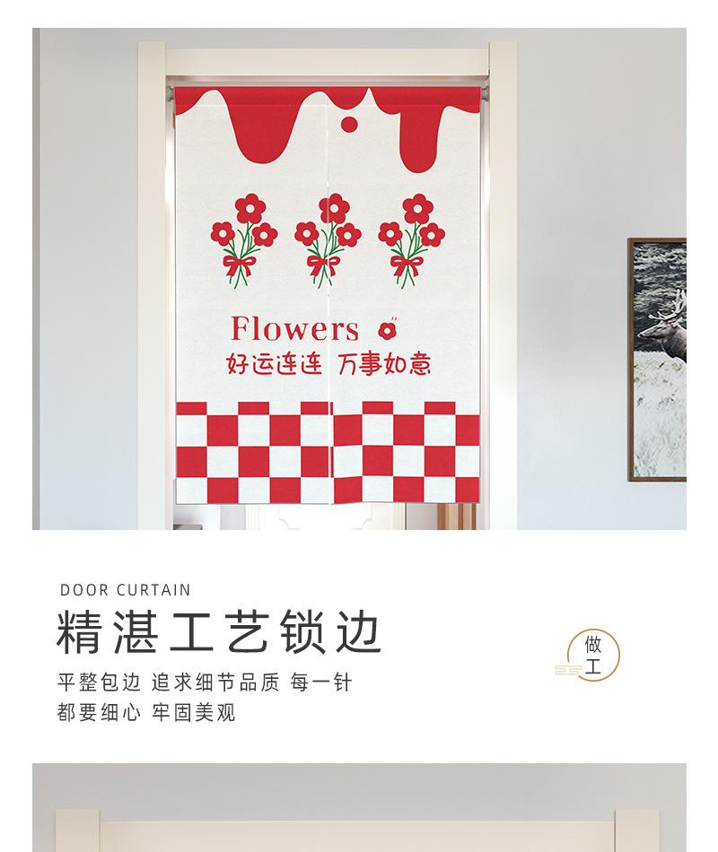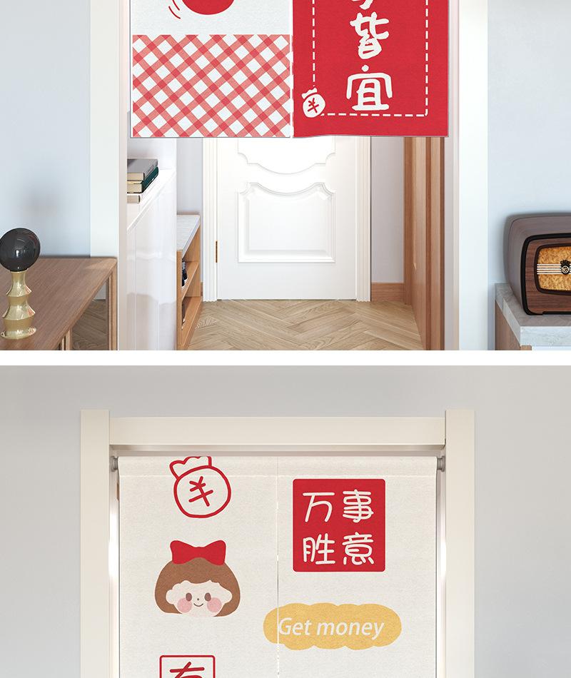 Cortina de puerta festiva roja, tela sin perforaciones, media cortina, cortina divisoria para dormitorio, cocina, cortina de baño