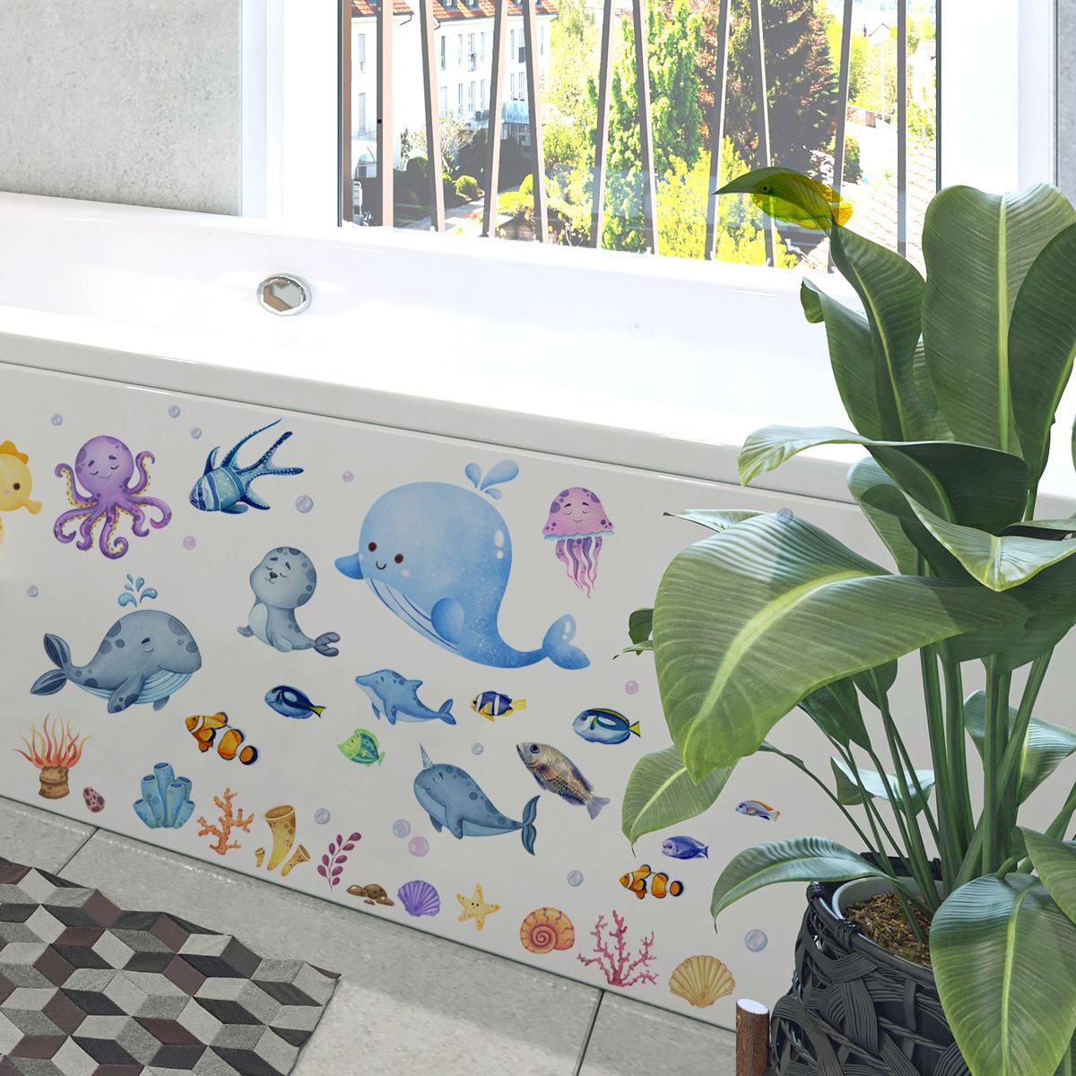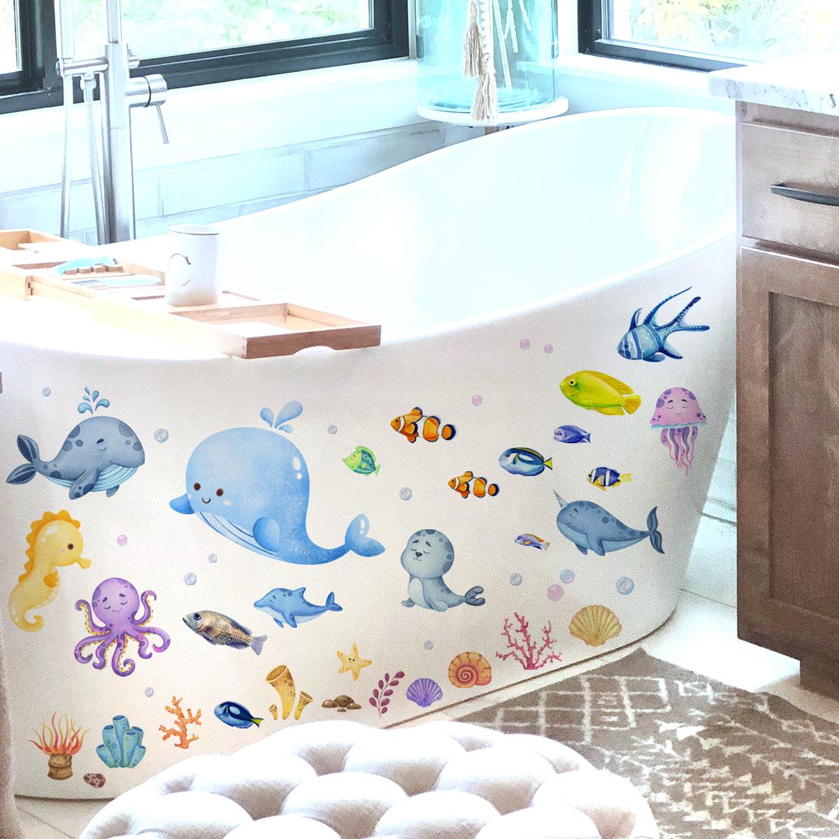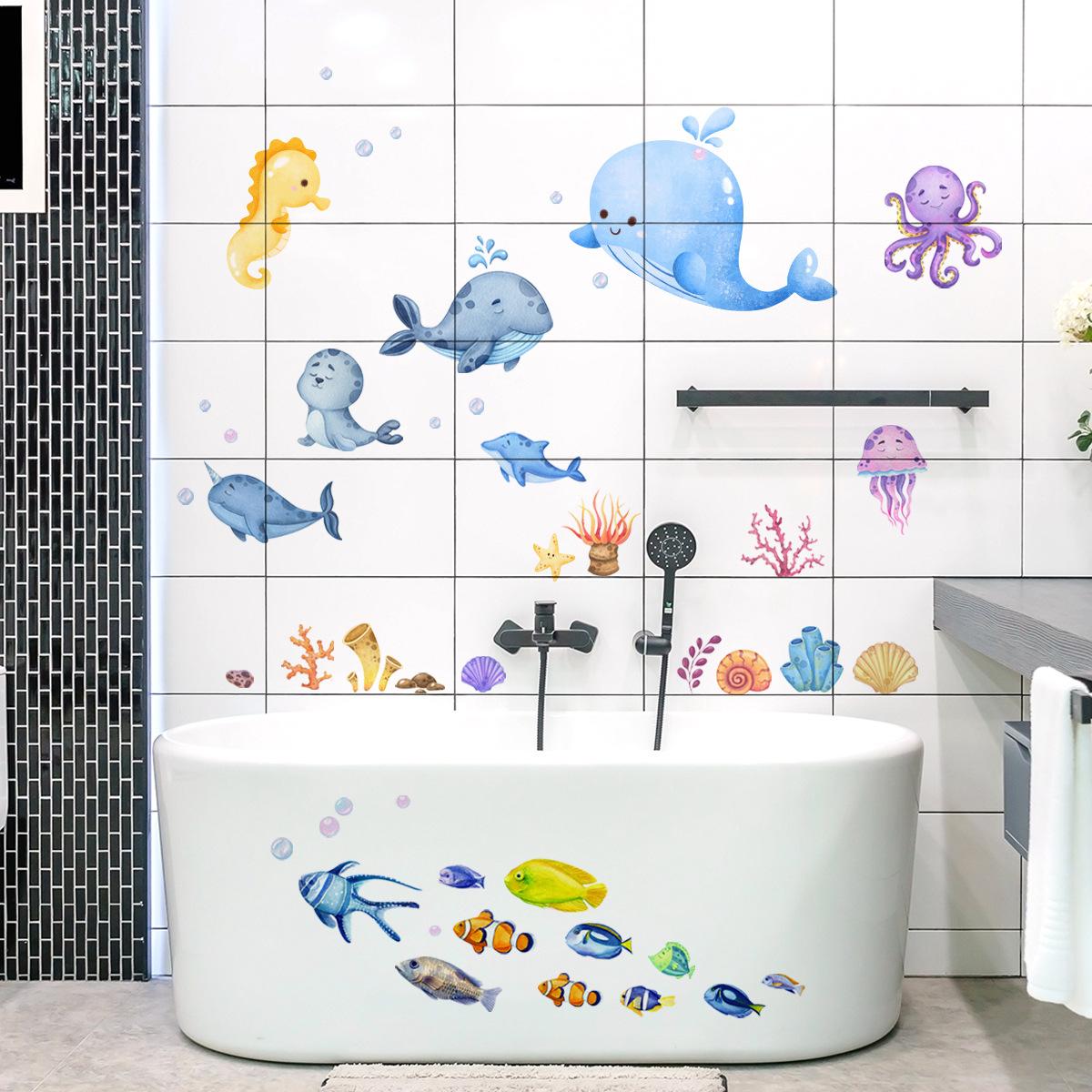 Ms533 Animales Marinos Ballena Pez Pequeño Pegatinas de Pared Pegatinas para Bañera Pegatinas de Pared para Sala de Estar Baño Inodoro Cantidad Grande Negociable