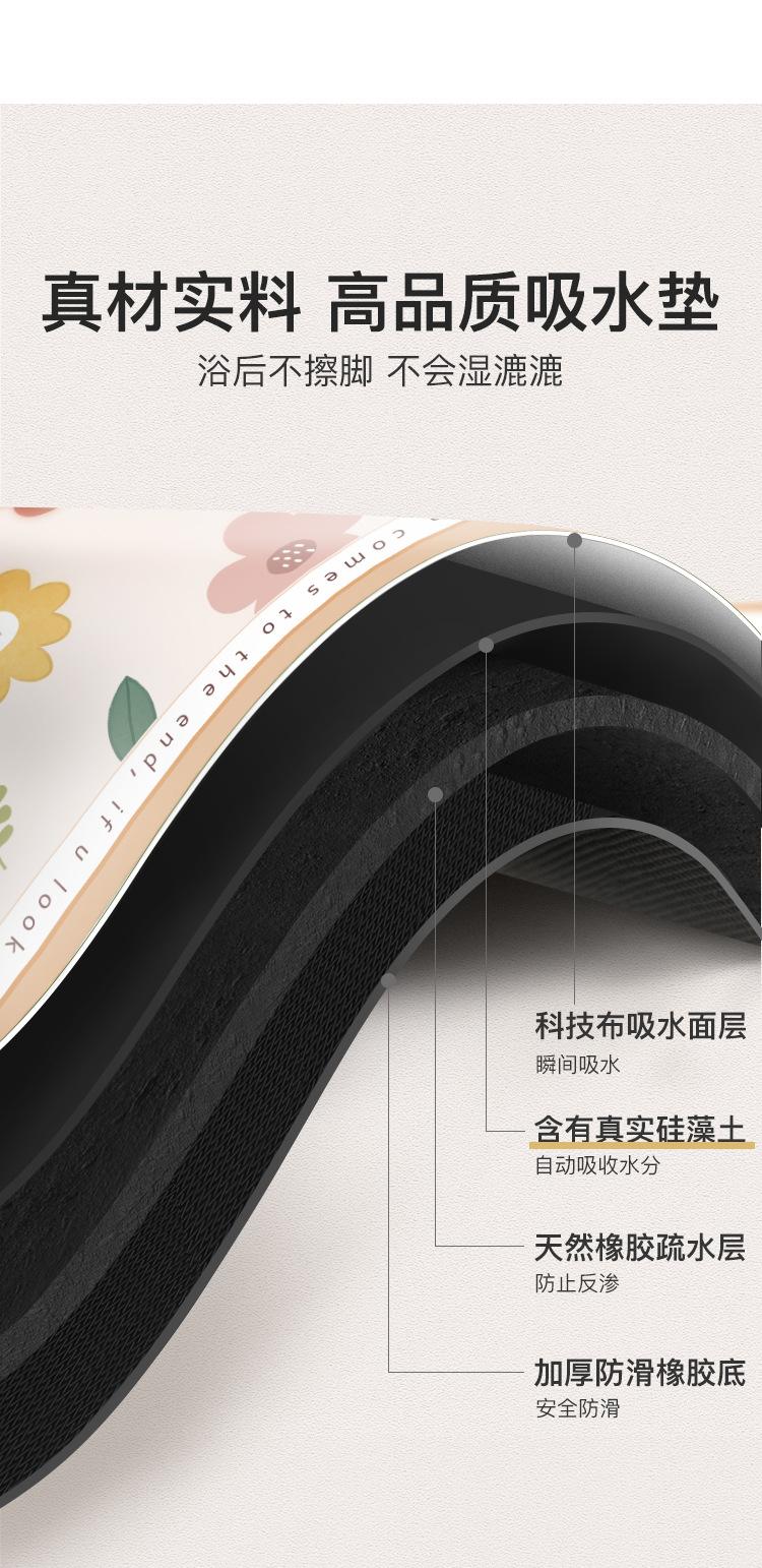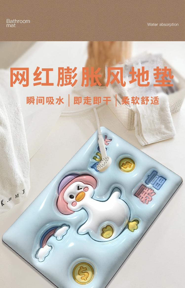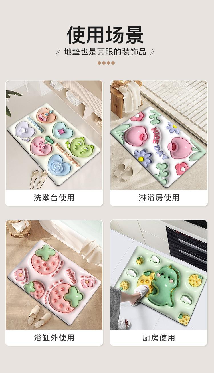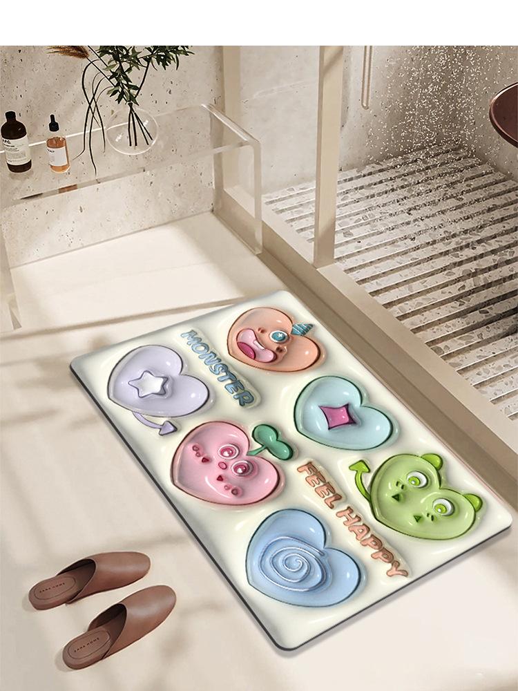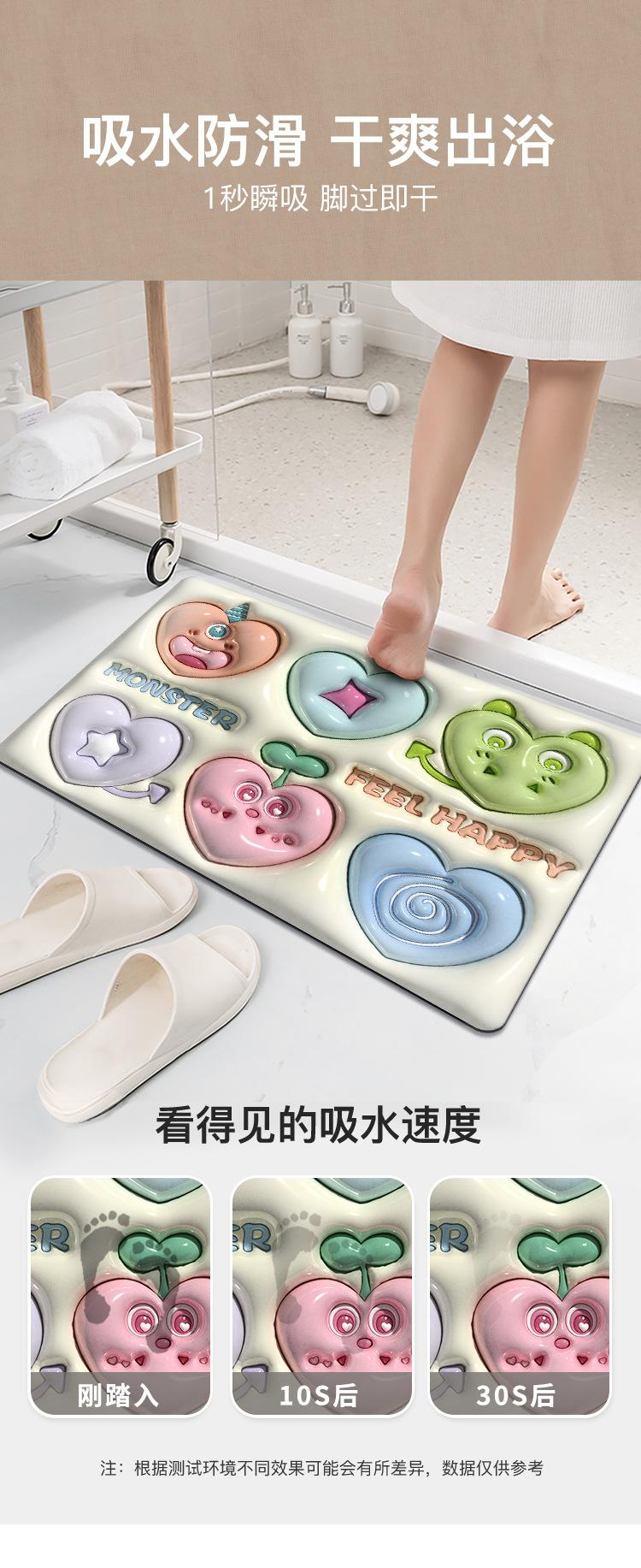 Alfombra de baño absorbente tridimensional 3D, antideslizante, suave, con diatomeas