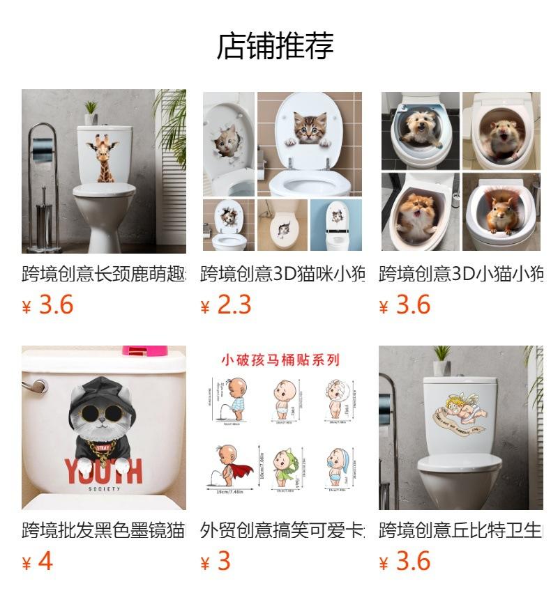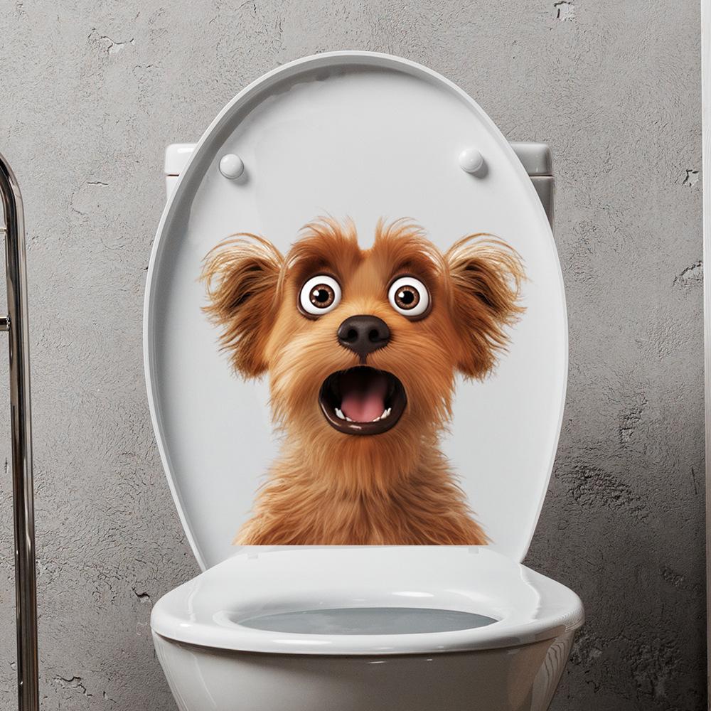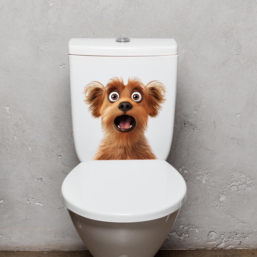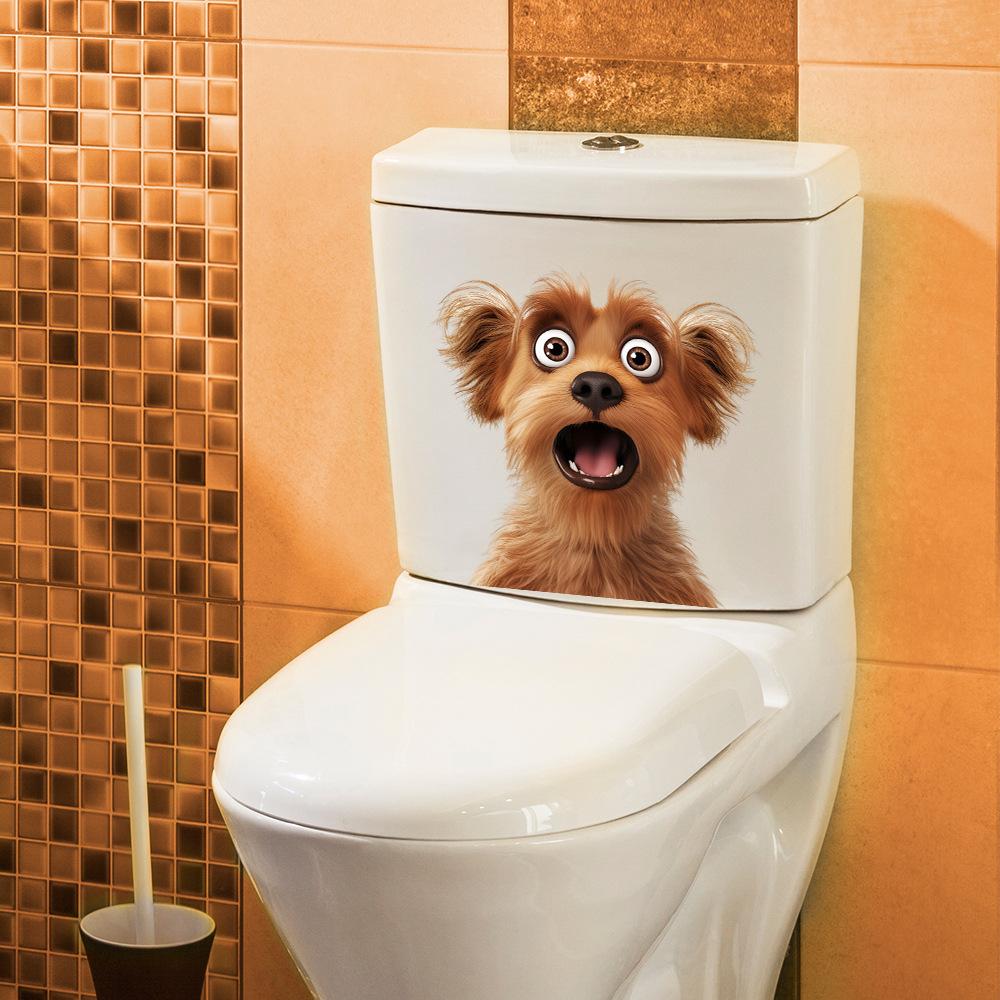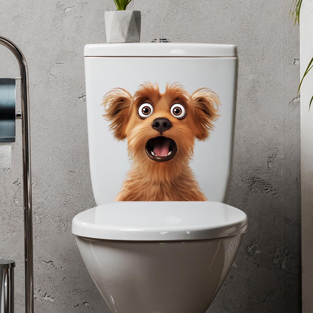 Pegatinas de pared autoadhesivas para inodoro con diseño de cachorro, creativas y transfronterizas, para decoración del hogar, resistentes al agua y al aceite.