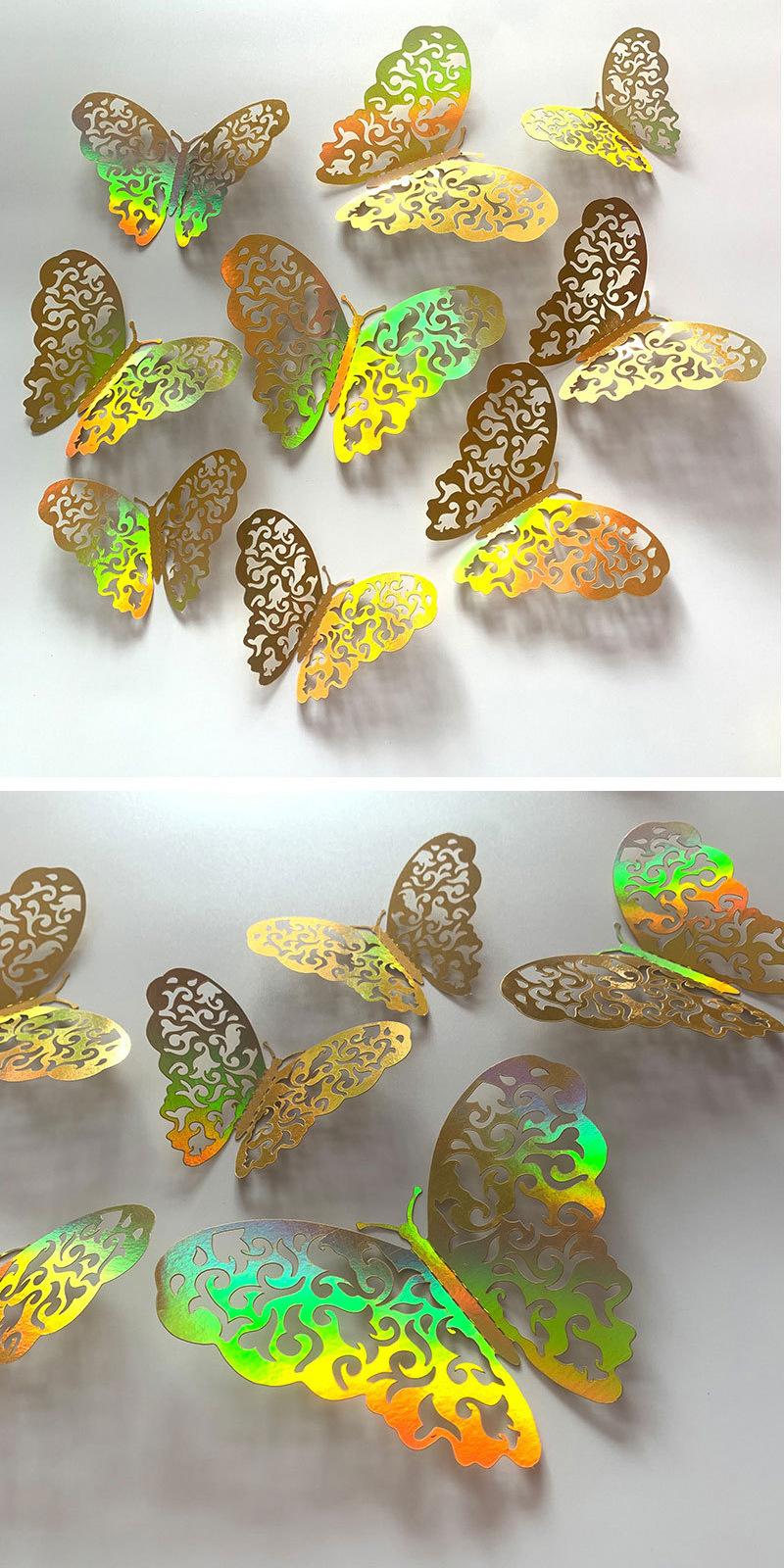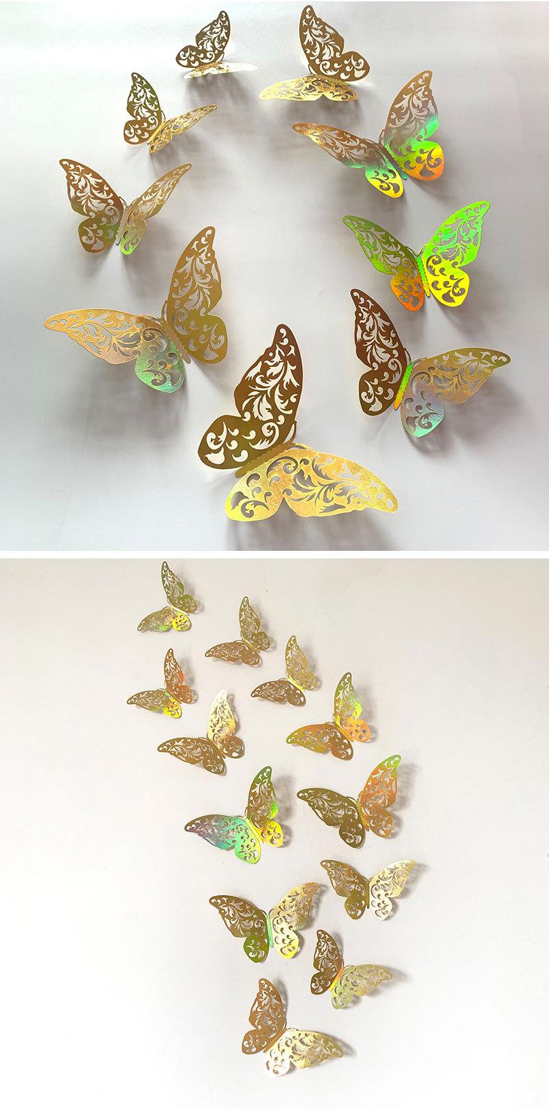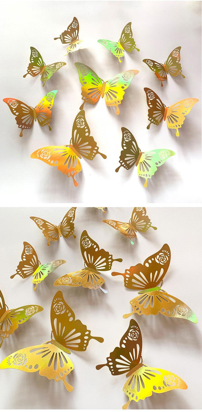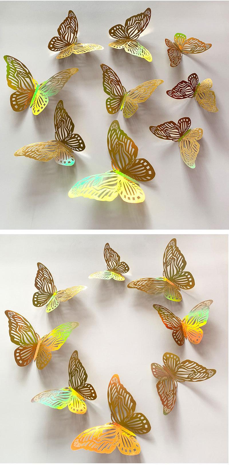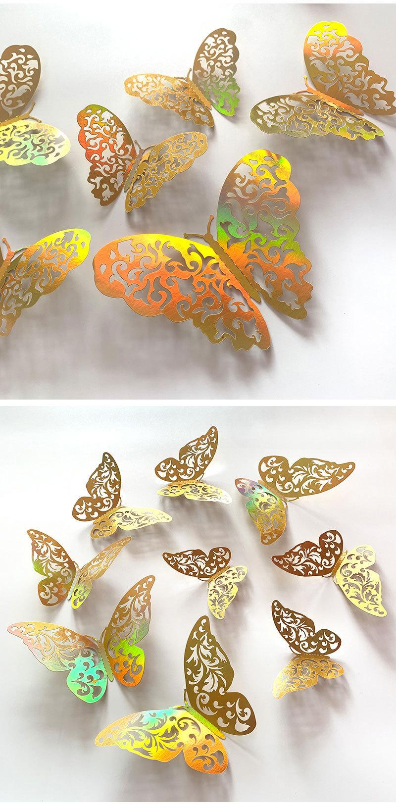 Pegatinas de fondo para decoración de pared con diseño de mariposa hueca tridimensional colorida en 3D para fiestas de bodas y fiestas