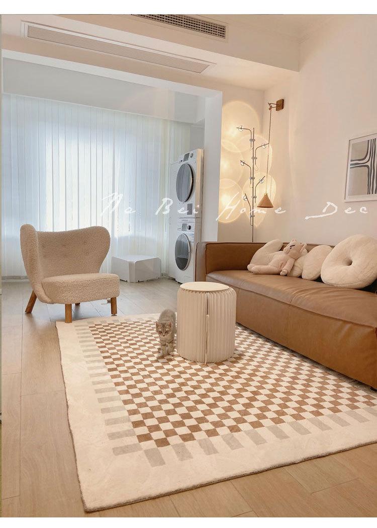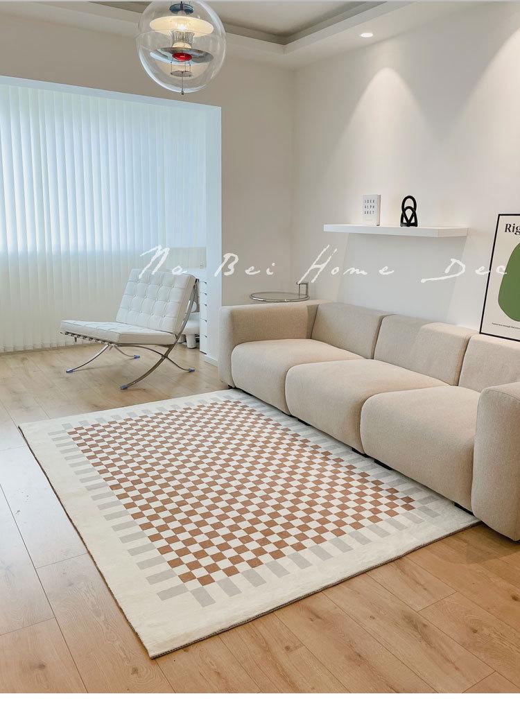 Alfombra nórdica moderna y sencilla de tablero de ajedrez, alfombra para el suelo de Tianjin, alfombra para sala de estar, dormitorio, mesita de noche, habitación entera, tienda completa personalizada