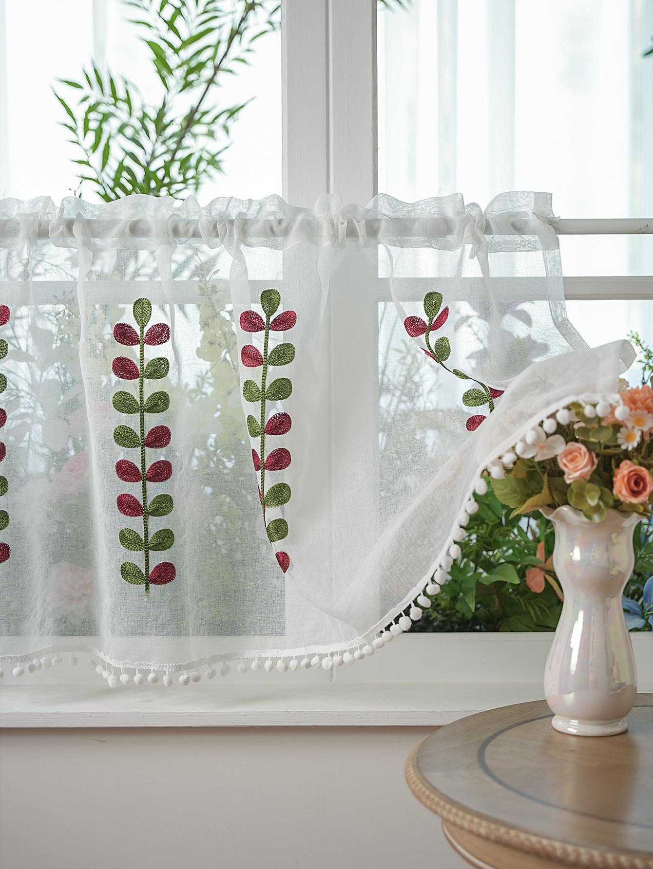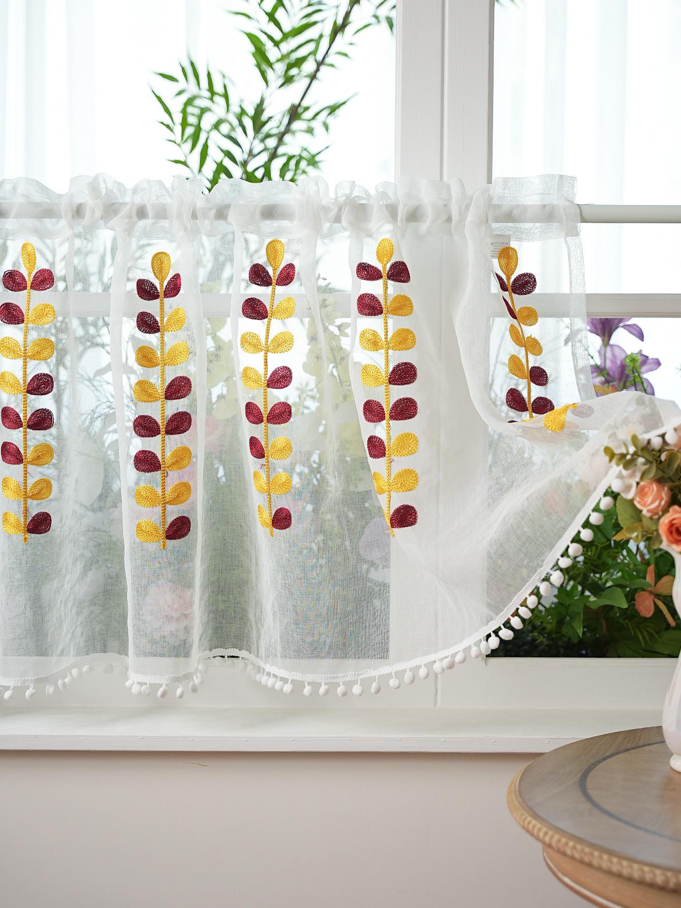 Cortina de Puerta Estilo Americano Sombreado Cocina Cortina Corta Cortina de Gasa Cortina de Partición Sombreado de Gabinete Cortina Fea de Café Estilo Moderno Simple Poliéster