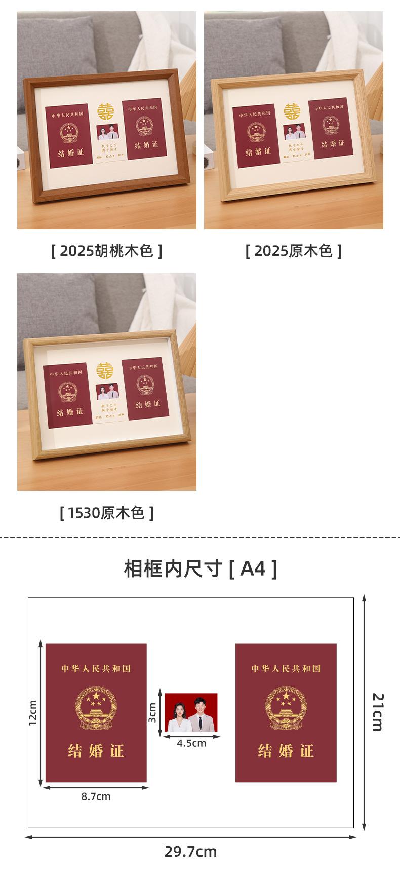 J2025-a4 marriage certificate photo frame with cardboard-walnut color, J2025-a4-a4 marriage certificate photo ...