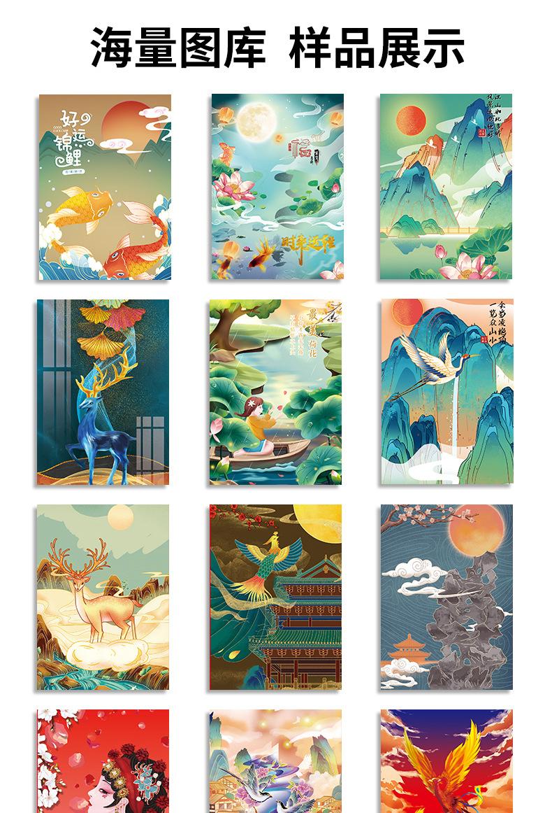 01 good luck koi, 02 wealth and auspiciousness, 03great rivers and mountains, 04 lotus deer, 05the most beauti...