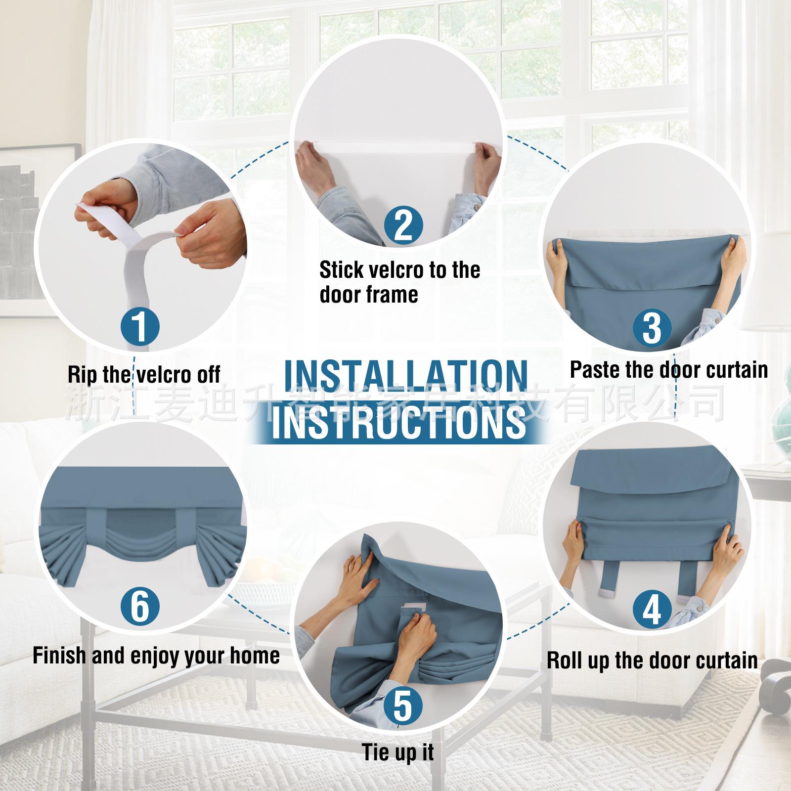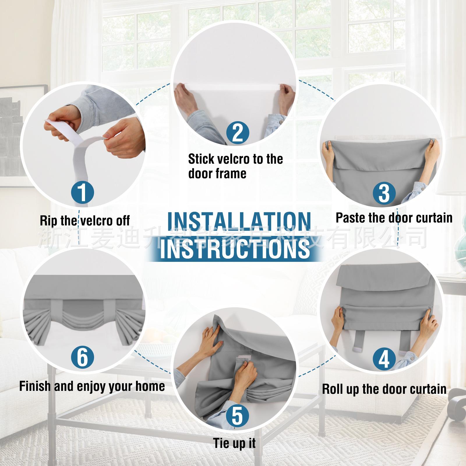 Cortina de puerta adhesiva negra lisa con parte trasera, de color sólido, con sombreado alto, ligera y de lujo, oferta transfronteriza de Amazon