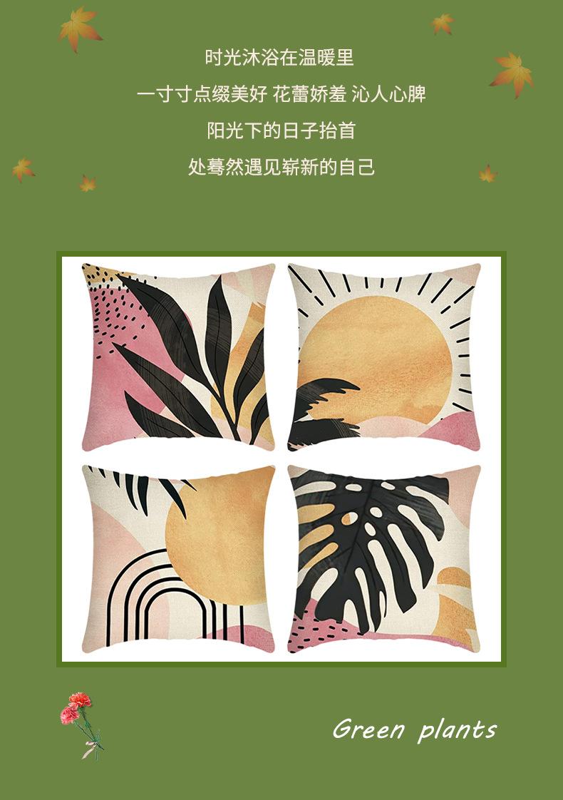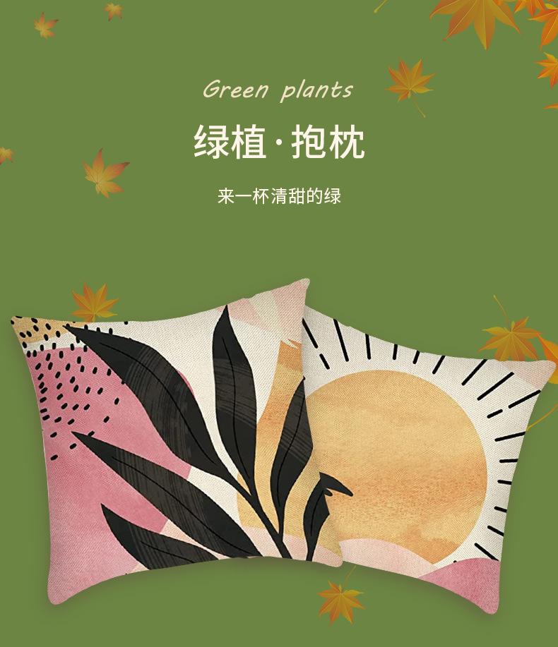 Compra Funda de cojín decorativa con estampado de lino para sofá de salón, con borde transfronterizo, para dormitorio de Amazon, con planta verde de verano. al por mayor en Joom.pro