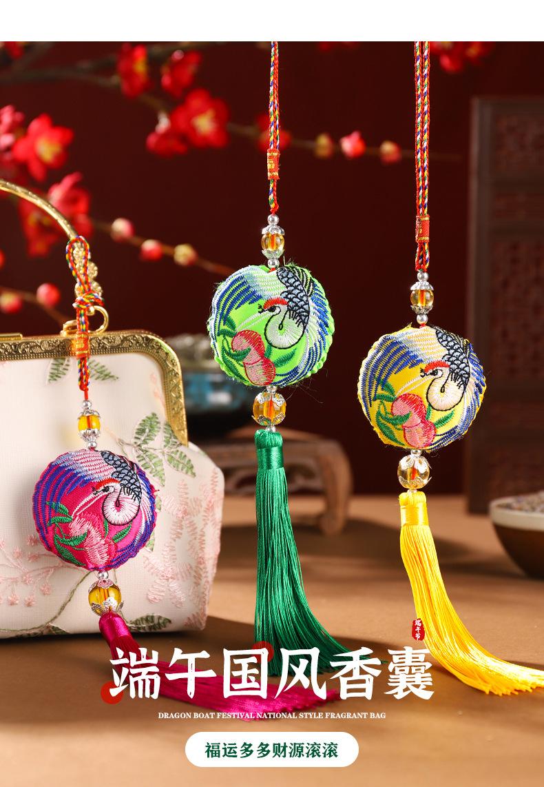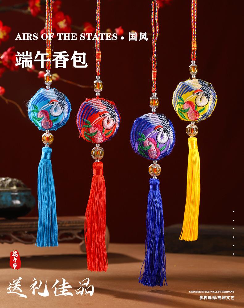 Bolsita del Festival del Bote del Dragón, estilo antiguo, bolsa de loto, bordado de grulla, adornos, bolsita con borla de ajenjo, colgante del Festival del Bote del Dragón