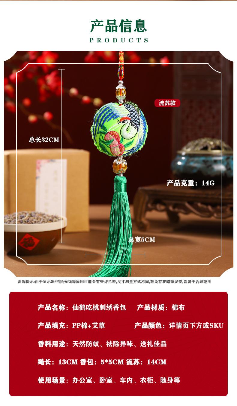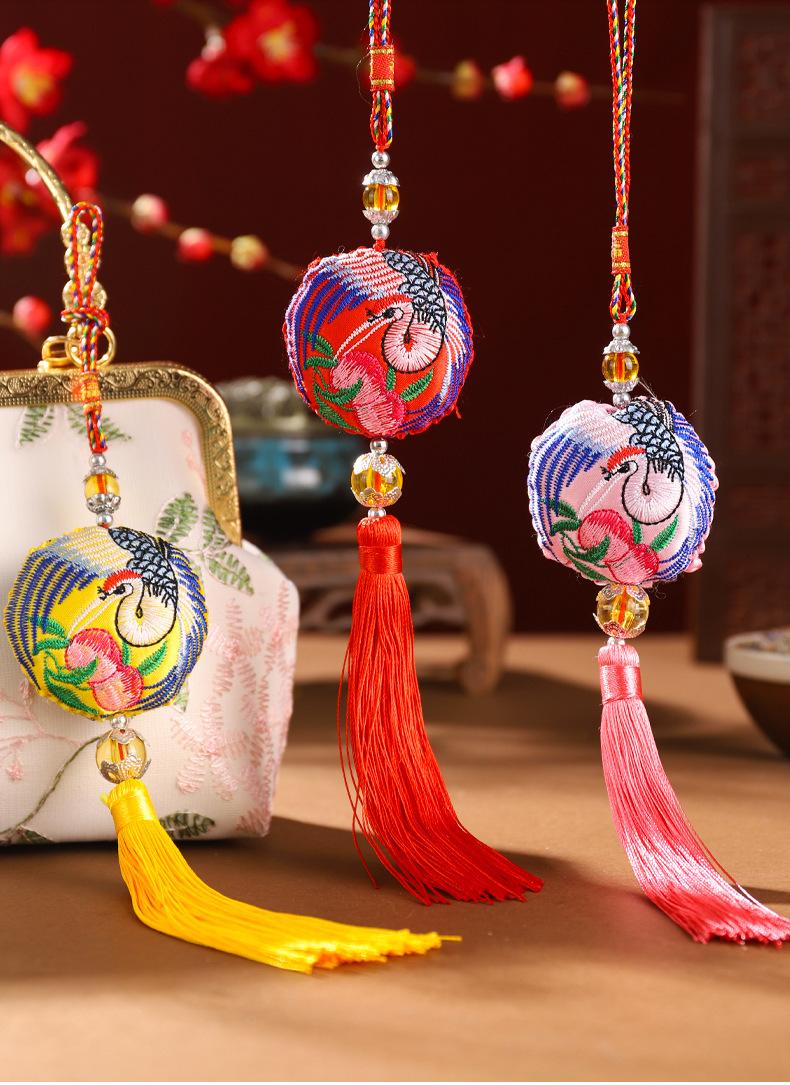 Random style, Yellow Crane eating peach MM-embroidered sachet, Blue Crane eating peach MM-embroidered sachet, ...