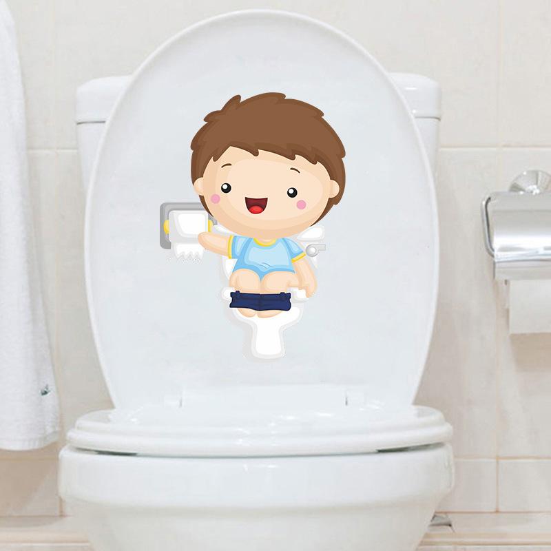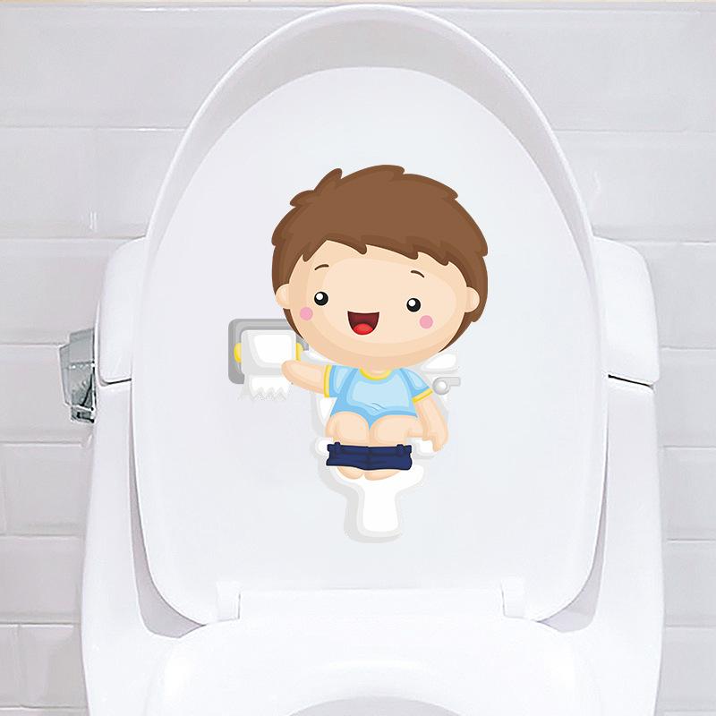 Nuevo M-79 dibujos animados lindo niño pequeño en cuclillas inodoro jardín de infantes pegatinas de baño decoración del hogar pegatinas de pared autoadhesivas